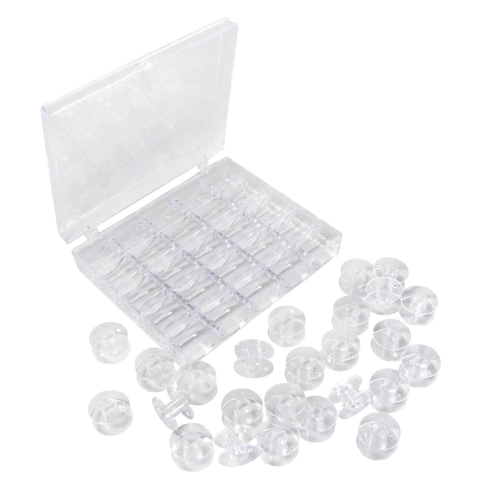 Grab ALL twenty-five (25) of these empty clear plastic Janome Bobbins (11mm high)..... so you can be fully prepared before you start any sewing project!