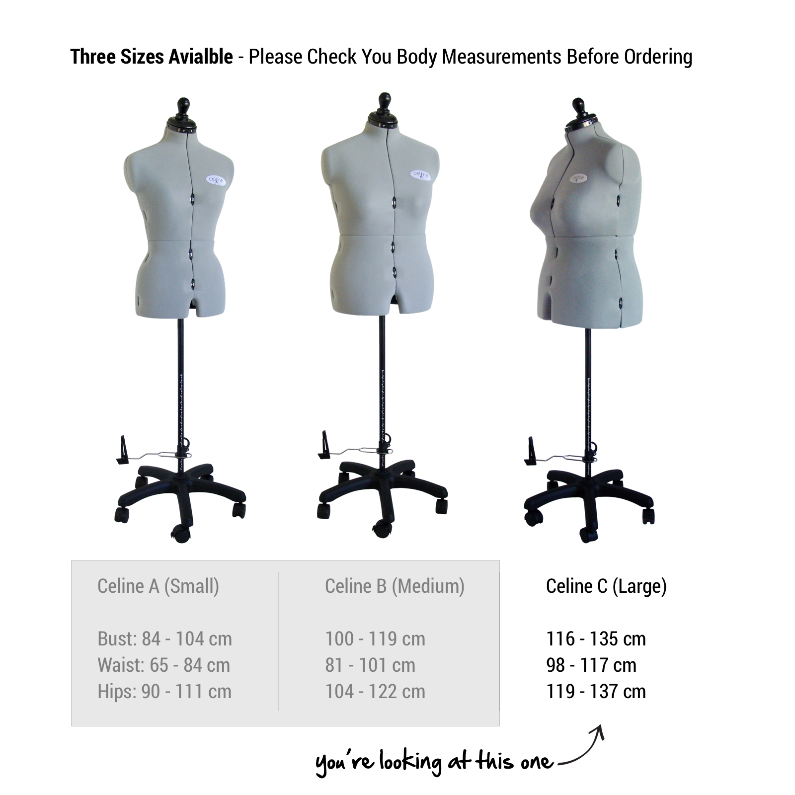 Celine Dressmakers MannequinBy: kthayess7360714 on 18 March 2021I was delighted when Celine arrived within 5 days of ordering. I was unsure if I had ordered the correct size so talking to Shelly was very helpful in determining if I had ordered correctly. I was also given the option to exchange if I felt the size was not right. I spent some time checking, measuring, adjusting and padding some areas and found it to be perfect. Many thanks for your support, flexibility and ease of purchase. Happily sewing Kath