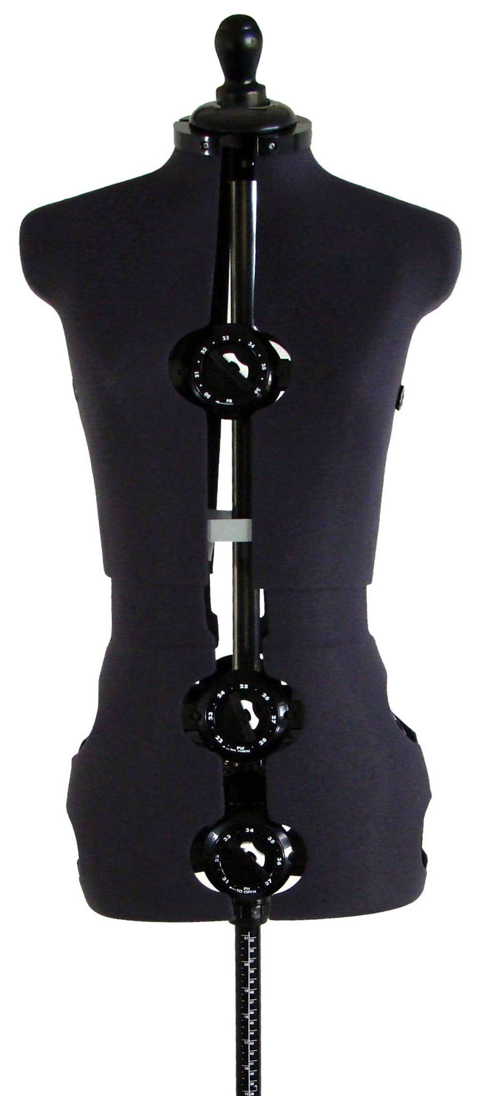 - Her twelve (12) dials make it easy to change the dimensions of the body, including settings at the neck for smooth collars and necklines.