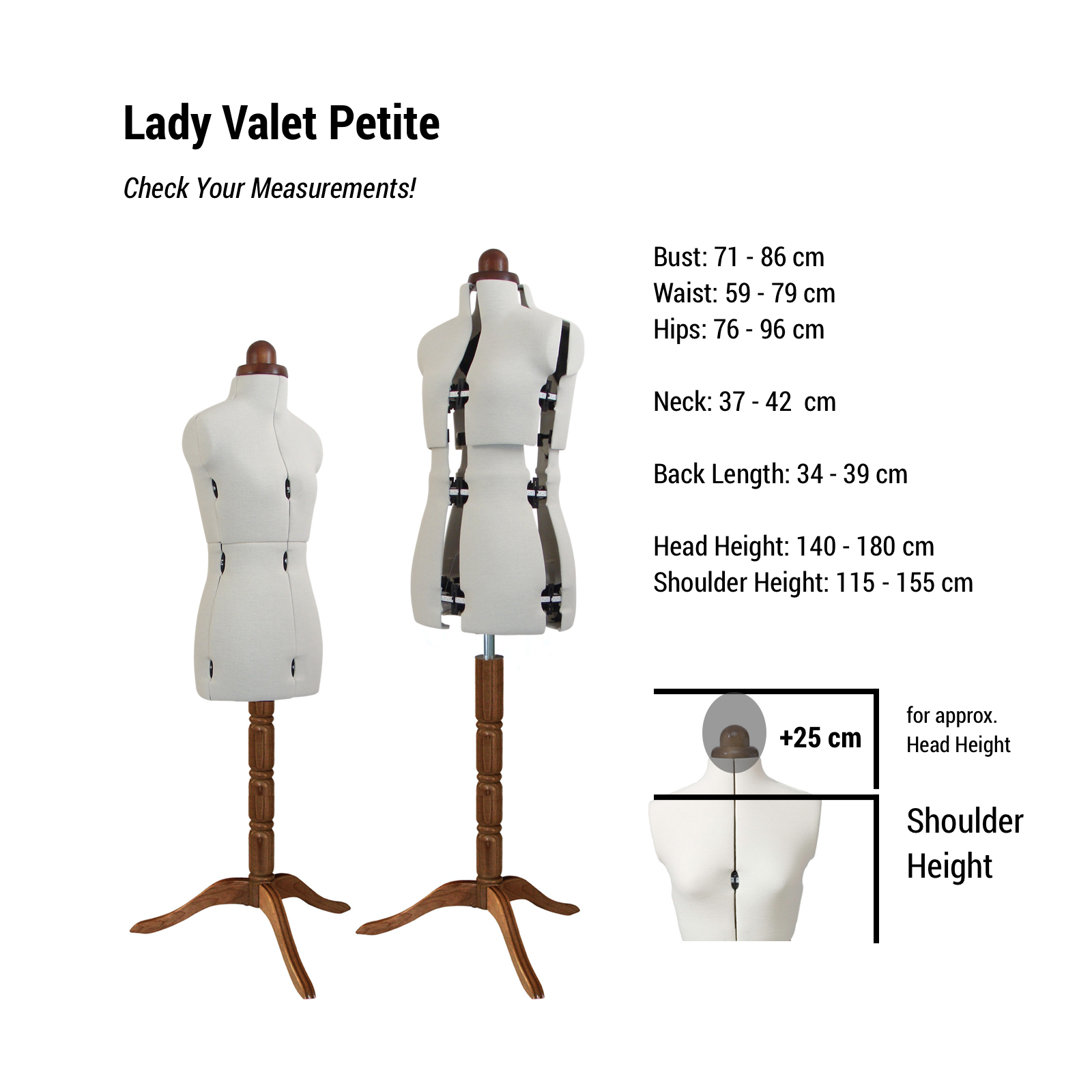 - Lady Valet provides plenty of precise adjustments at greater accuracy, that's why she is chosen by so many professional dressmakers.