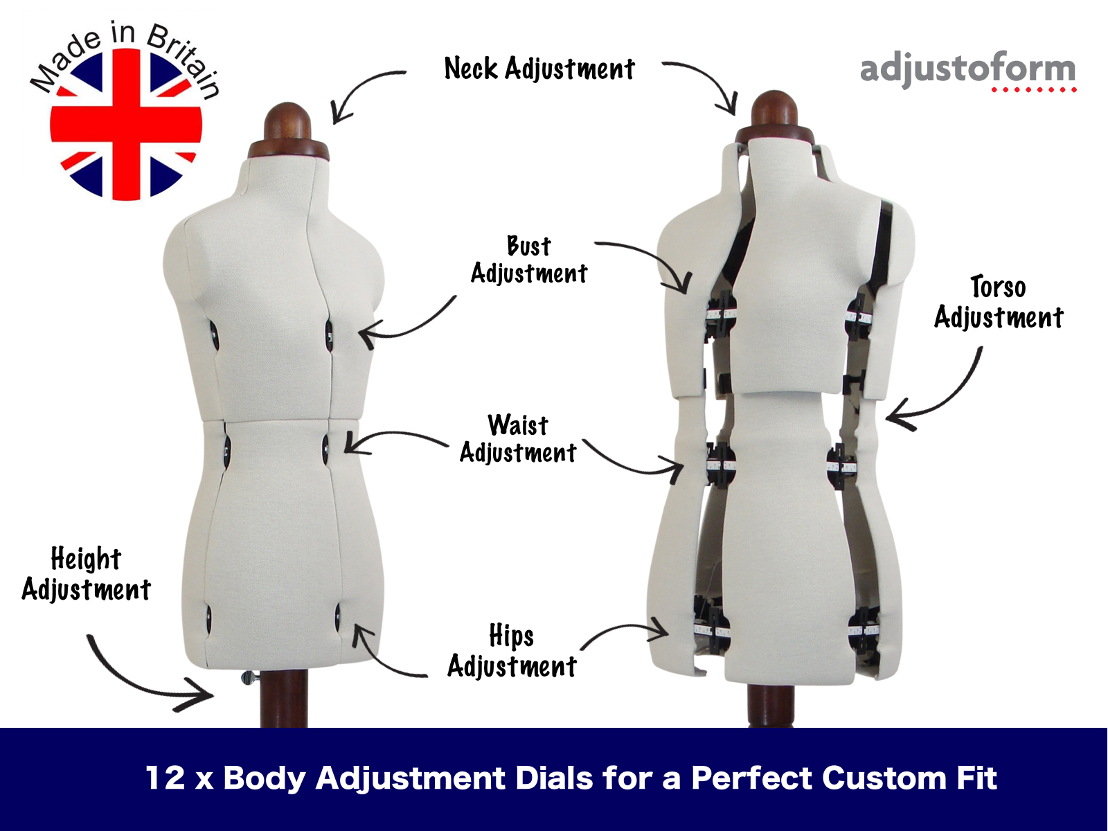 Simply adjust the dials to your body measurements - then pad her up to reflect your shape because no two people have the same curves :-)
