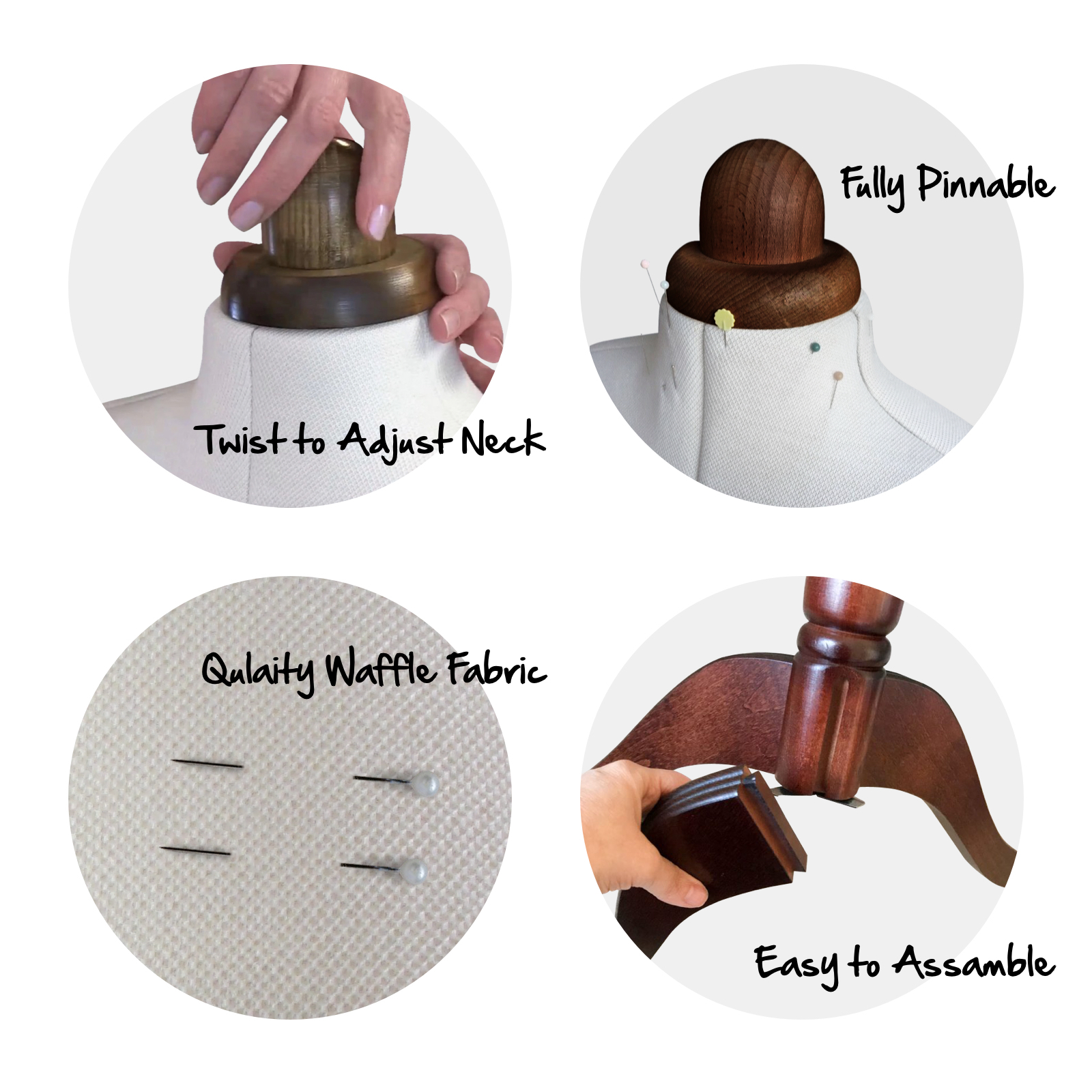 Lady ValetBy: Catherine on 22 March 2024Very quick delivery and very easy to assemble. Good quality adjustment mechanism, which is not only easy to use but much more unobtrusive than other mannequins on the market. The combination of the ecru fabric and the wooden legs makes her a stylish addition to the sewing room. Highly recommend.