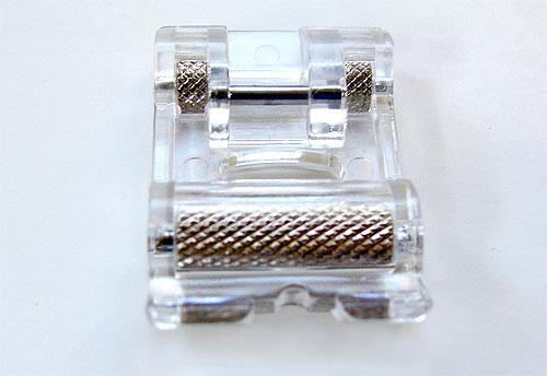As its name suggests, this foot has rollers that roll on top the fabric - it's very much like the track on a bulldozer (but much gentler) for sewing up and over heavy seams and uneven surfaces.