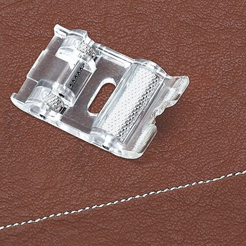Like the Teflon foot, it is also handy for sewing sticky materials like leather, oil-clothes and vinyl.