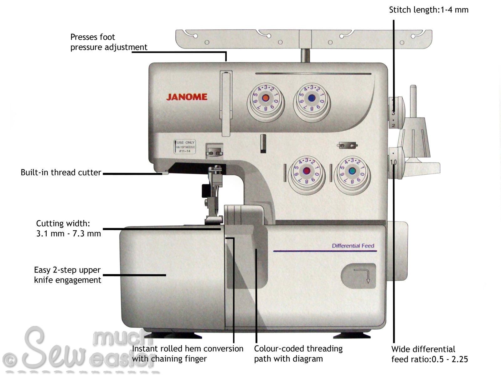 Trouble-Free Overlocking - you have 0.5 - 2.2 Differential Feed ratio to suit different types of fabrics