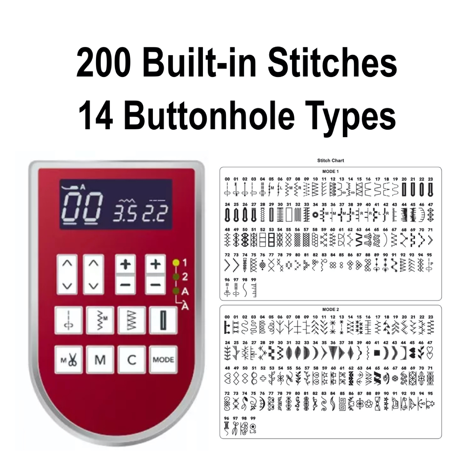 - Your new DM7200 gives you a great selection of 200 + built-in stitches + alphabet - including 14 buttonhole styles!
