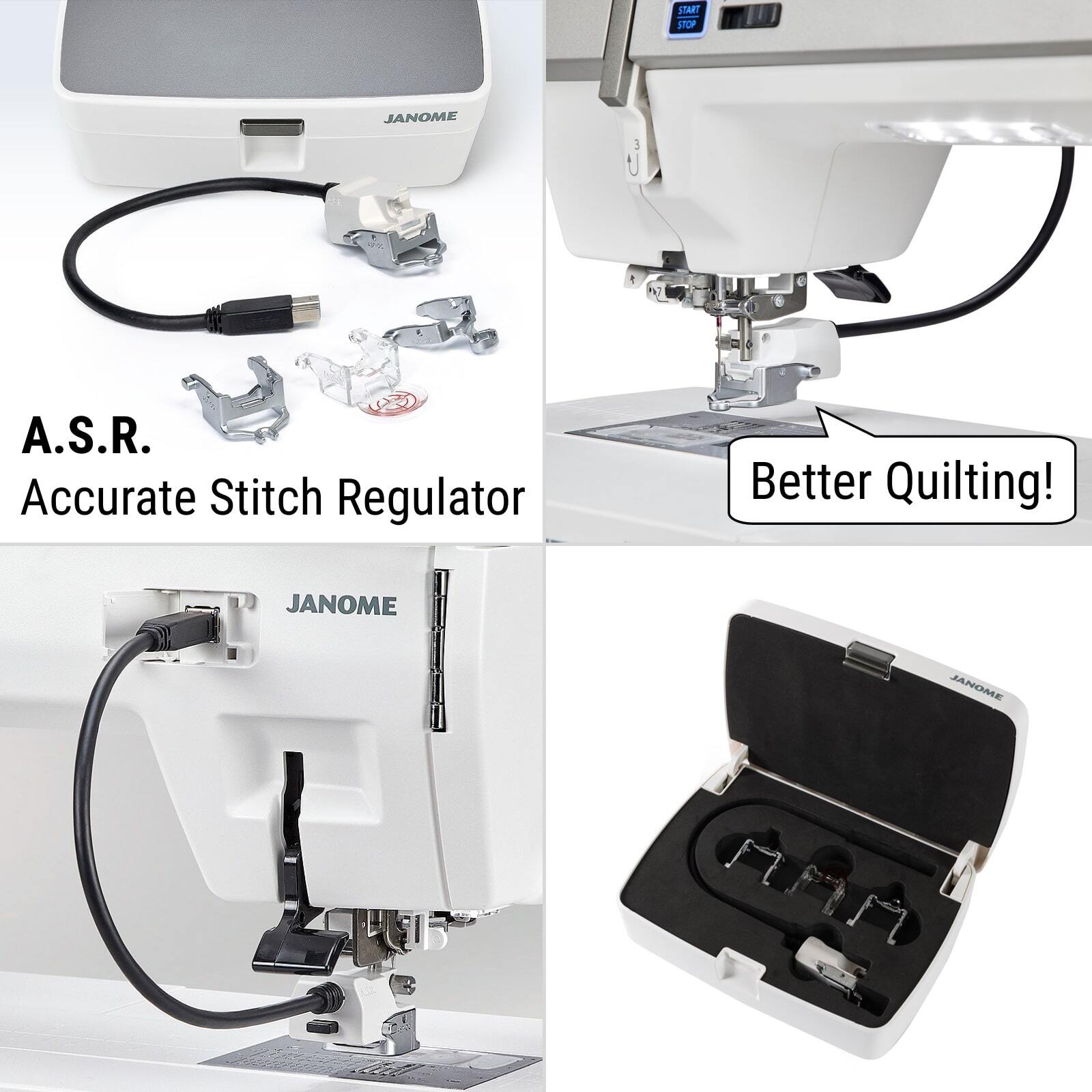 The answer is Accurate Stitch Regulator (A.S.R. for short). Once connected, ASR takes over the speed control for free motion quilting - so your fabric gets moved automatically at the same speed as how fast (or slow) you sew.