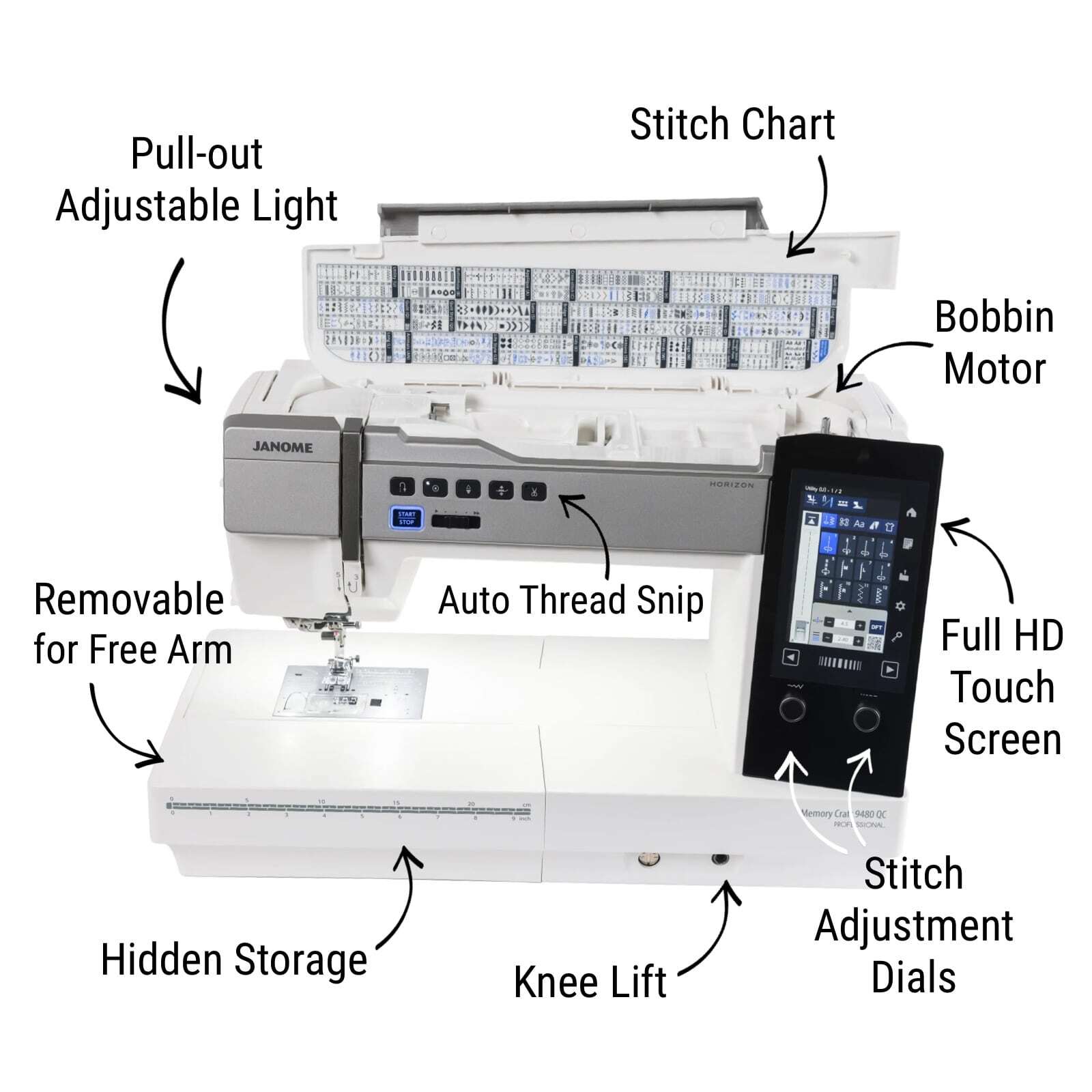 I am a quilter and the dual feed, auto presser foot lifter, thread cutter systems, lighting is great. The eleven inch bed space makes it so much easier to quilt a quilt. There are many great features in the 9480 has so many built in stitches to make your project your own. Love this machine."