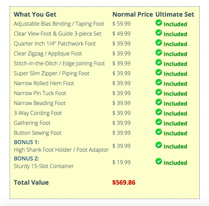 - you like how this one comes with The Ultimate Presser Feet Set so that you're covered for everything