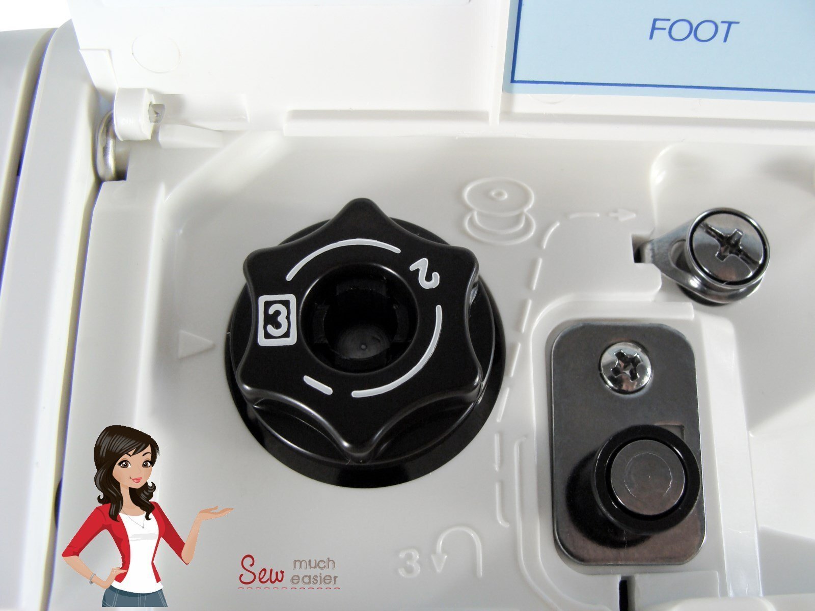 The pressure adjustment sets the amount of pressure that the presser foot places on the fabric (try saying this line three times. Fast).