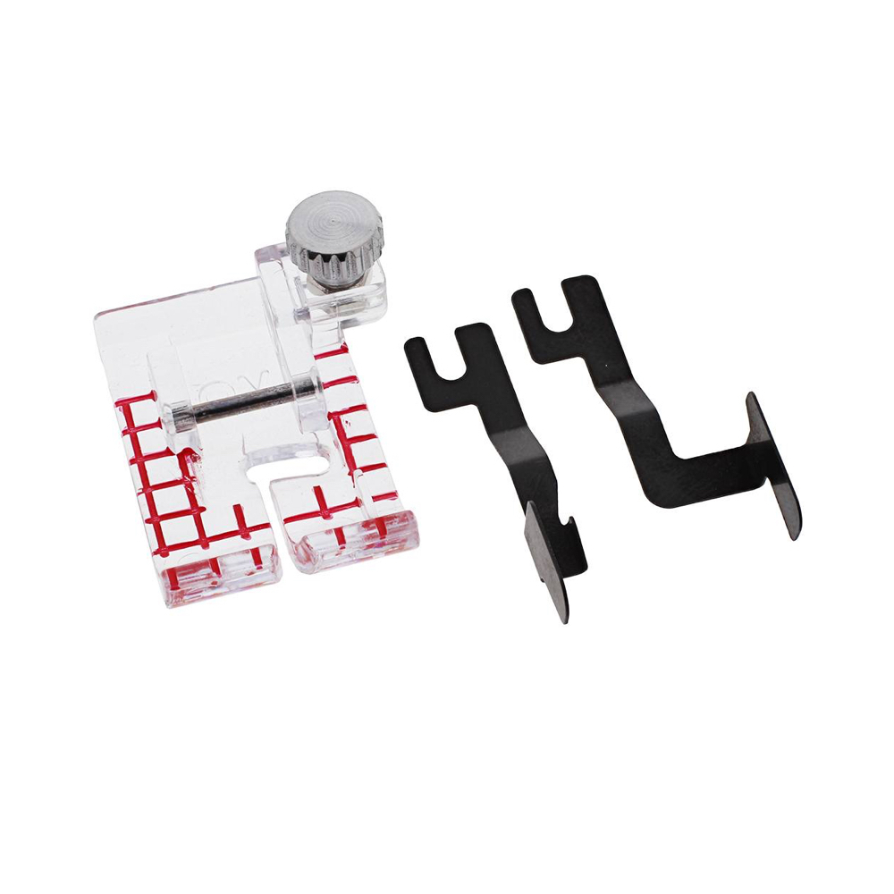 - You can enjoy quilting-in-the-ditch or echo lines with the Clear View Quilting Foot and Guide Set (with a handy red grid and two optional guides).