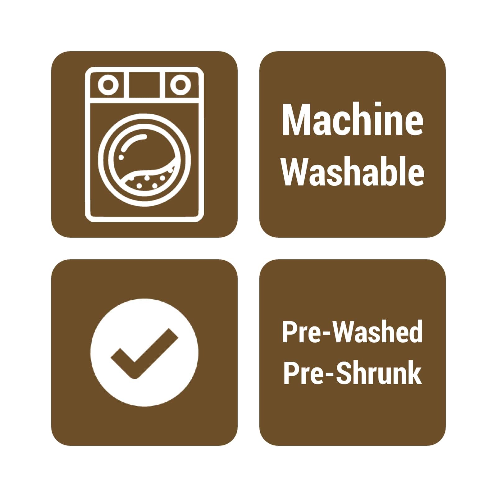 - Prewashed, preshrunk and machine washable once quilted