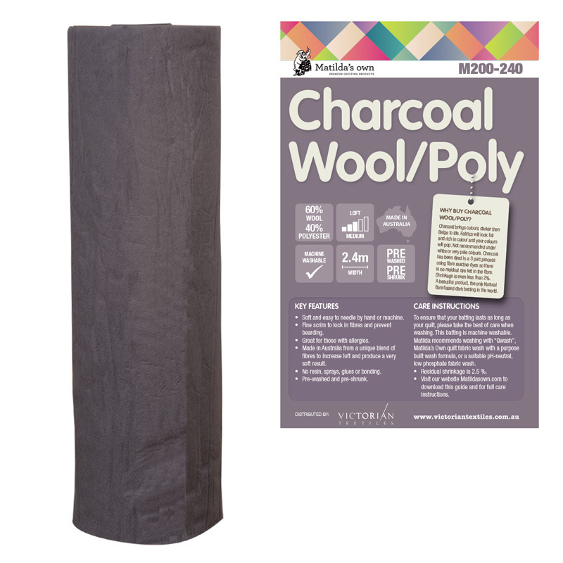 Matilda's Own Wool Poly Batting Charcoal (240cm Width) - Whole Roll 30m