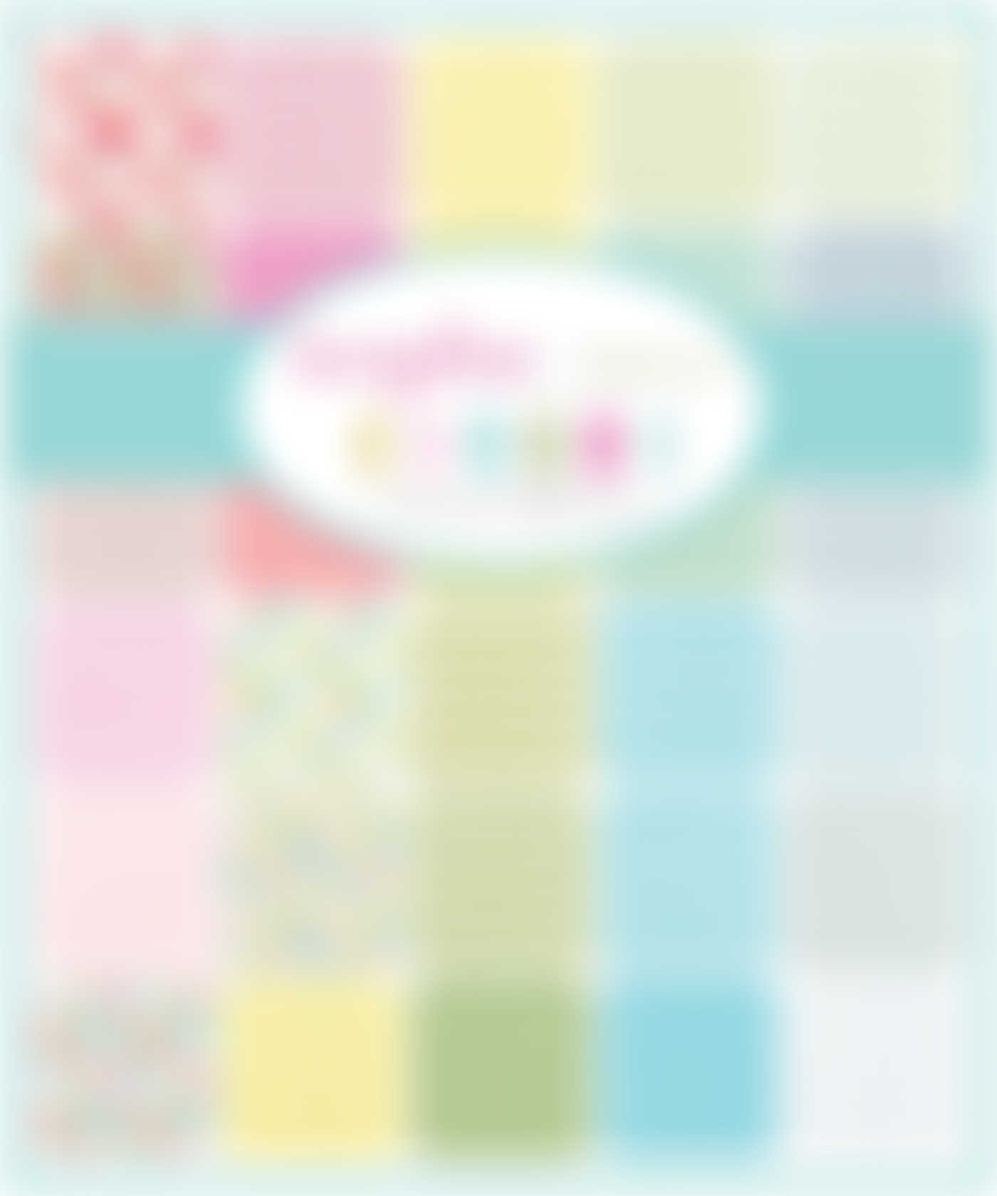 The palette of soft yellow, green, aqua, and grey has accents of red and berry that blend to create fresh colour combinations for all your projects!"