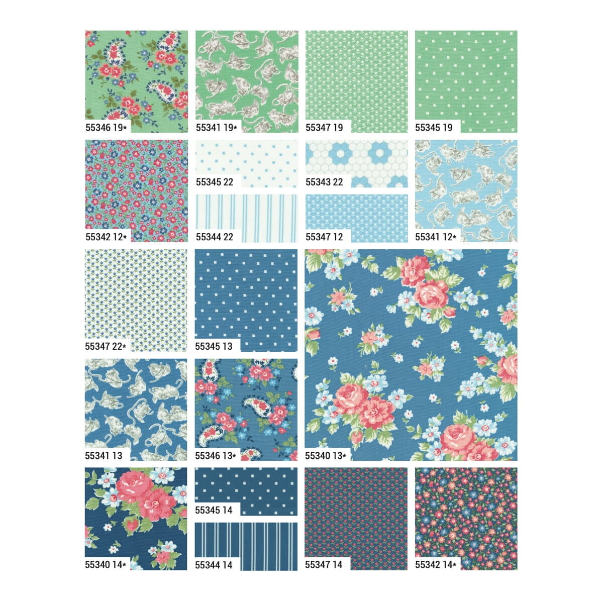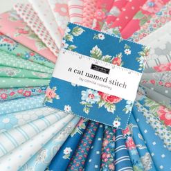 Named after Camille's kitten, Stitch, who loves to spend time in her sewing room! This collection This collection pays homage to furry friends and those wonderful days together in the sewing room. It has everything from beautiful vintage florals to perfect dots, simple stripes and delightful busy little prints, all in the sweetest, soft colours. And of course a kitten or two mixed in for good measure. Cats and quilts, the perfect pair. Enjoy!