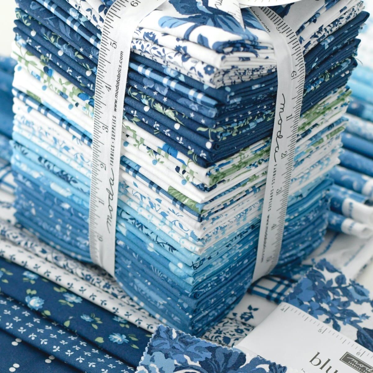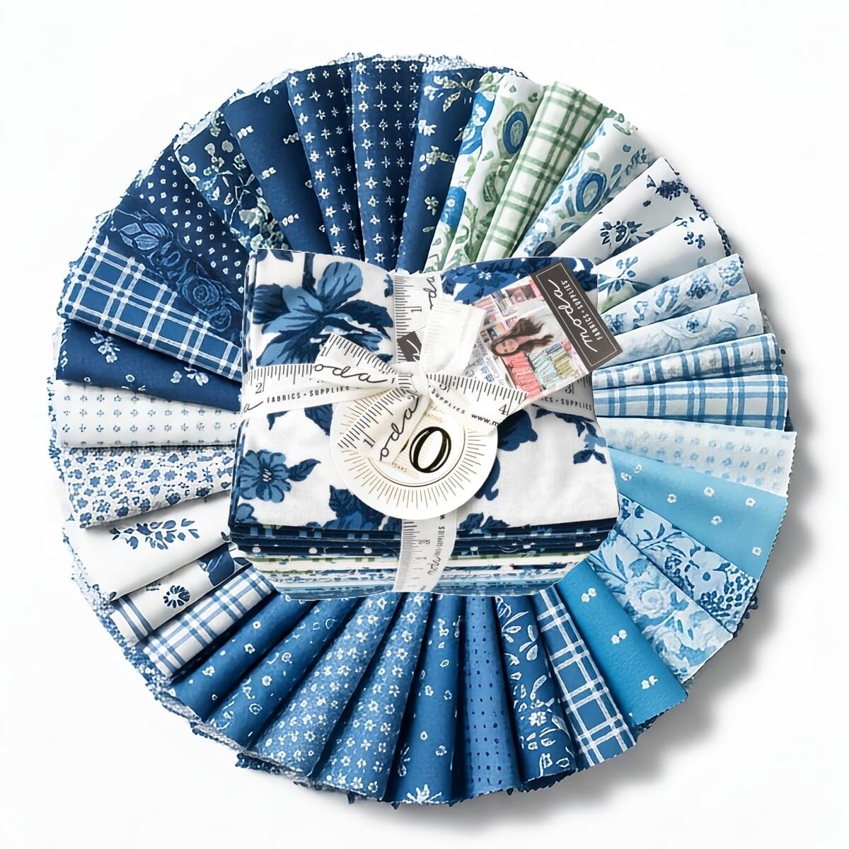 Moda "Blueprint" Fat Quarter Bundle is a convenient pre-cut assortments of colour-coordinated fabric pieces in 100% cotton for patchwork quilting. Designed by Camille Roskelley, and professionally cut and packaged by Moda Fabric, this pack contains 37 pieces of 18" x 22" (approx. 45 cm x 55 cm) fabric - one of each for the whole collection.