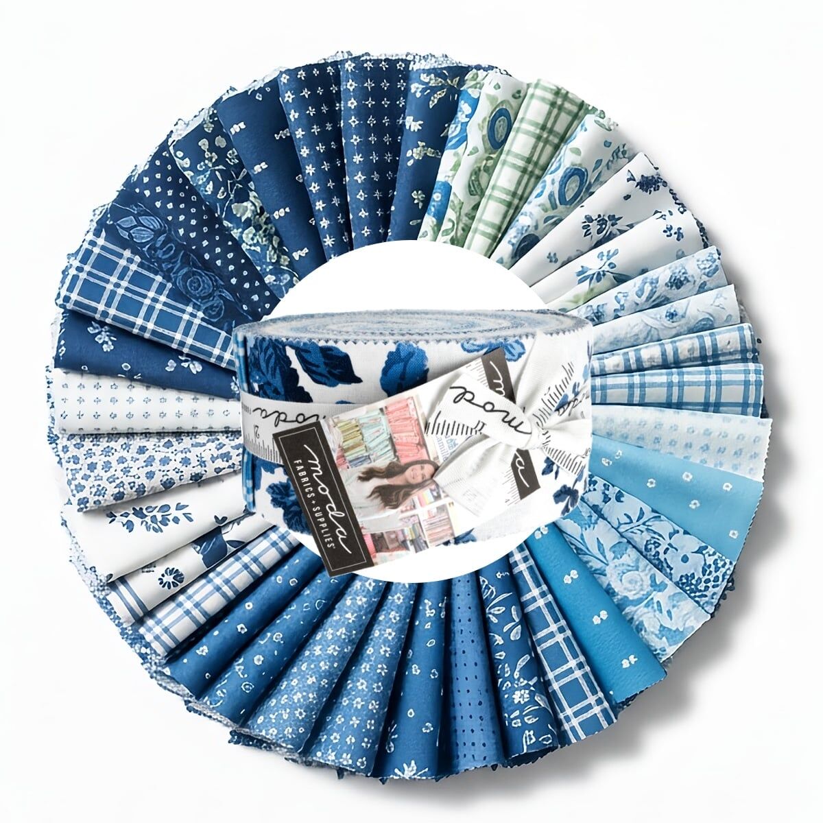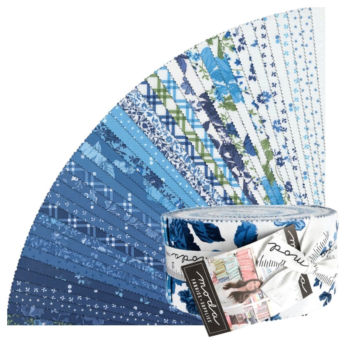 Moda "Blueprint" Jelly Roll is a convenient pre-cut assortments of colour-coordinated fabric strips in 100% cotton for patchwork quilting. Designed by Camille Roskelley, and professionally cut and packaged by Moda Fabric, this pack contains 40 strips of 2 1/2" (or 6.4cm) wide fabric, cut across the width - ideal for strip-piecing and perfectly versatile.