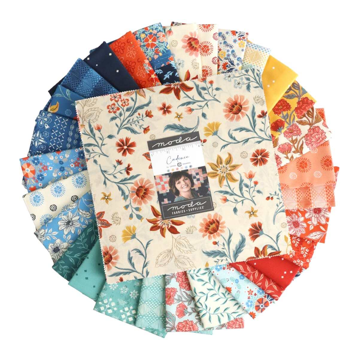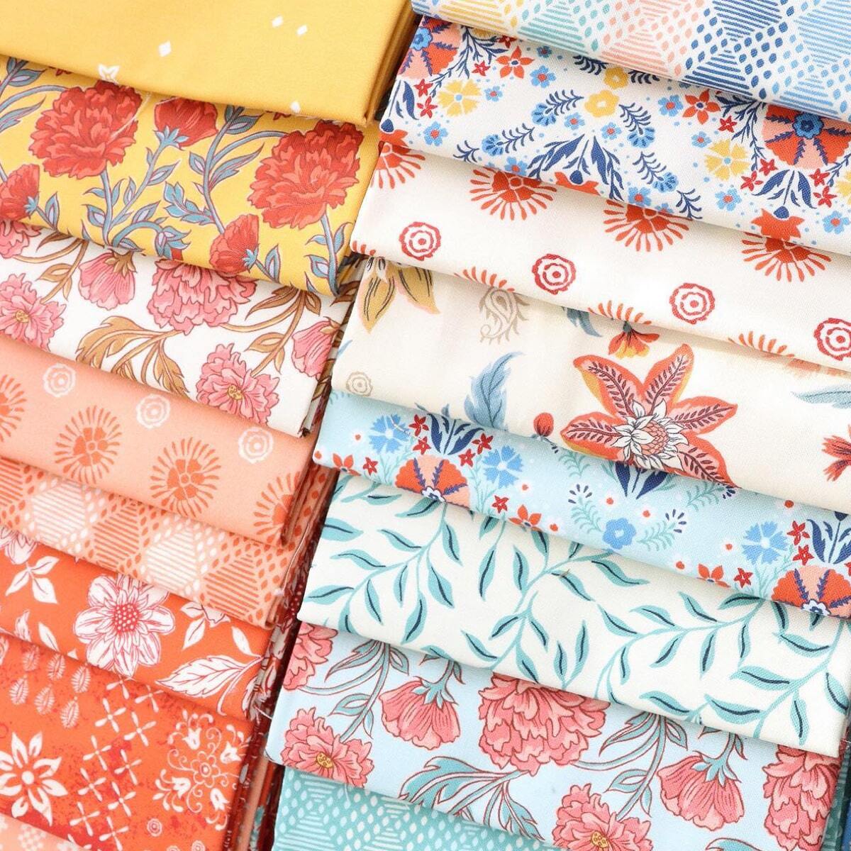 Cadence is the perfect collection for creating your favourite project with a boho chic vibe. Filled with vibrant colours and exuberant indie blooms in denim blue, reds, tangerine and pops of yellow. Accented with whimsical folkloric motifs and soft geometrics, you can imagine evenings around a campfire with a quilt wrapped around your shoulders. Enjoy!