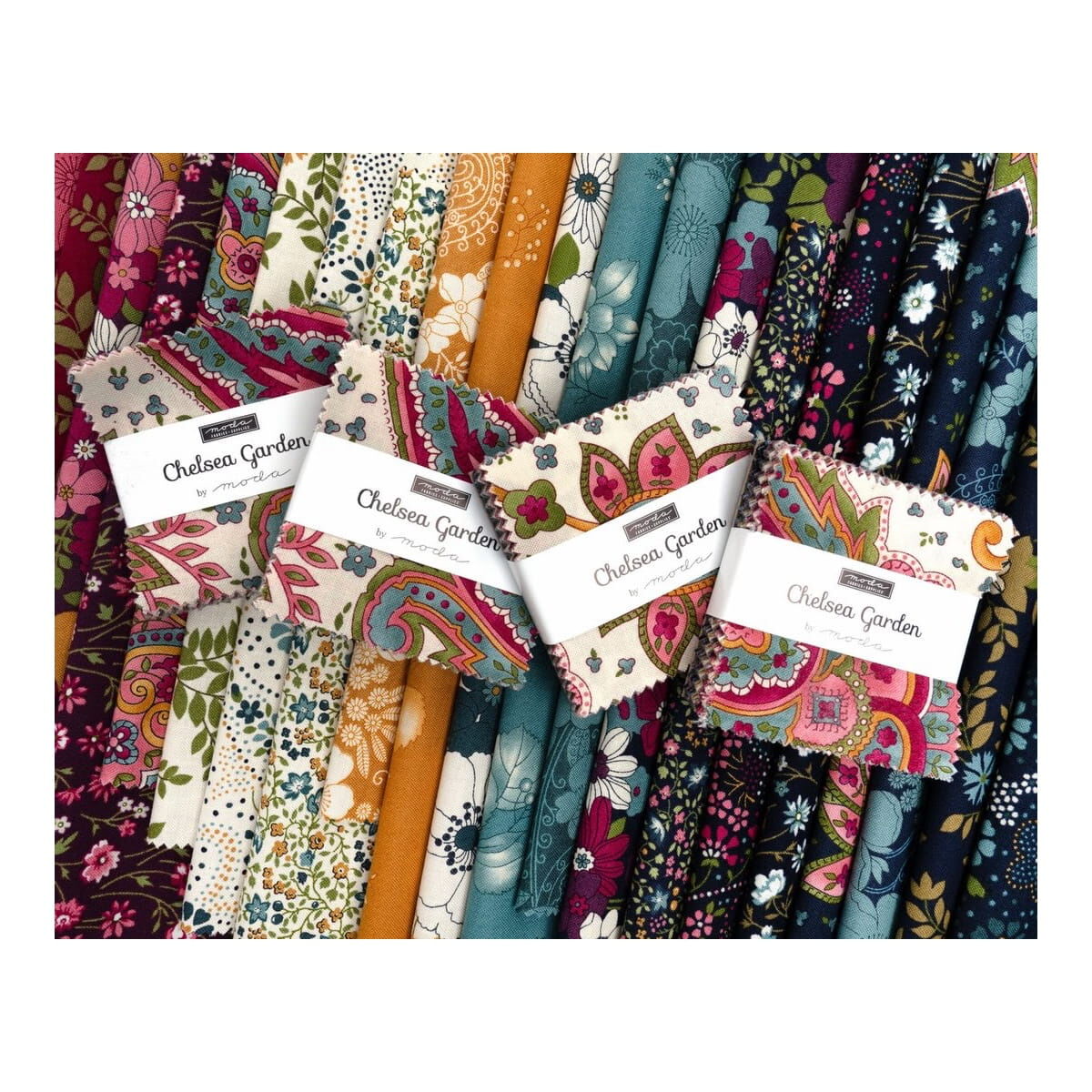 Moda "Chelsea Garden 2026" Charm Pack is a convenient pre-cut assortments of colour-coordinated fabric squares in 100% cotton for patchwork quilting. Inspired by 1970's London, in Liberty-style prints, designed & professionally cut and packaged by Moda Fabric, this charm pack contains 42 of 5" x 5" (or 12.7 cm x 12.7 cm) fabric pieces - known as "Charm Squares".