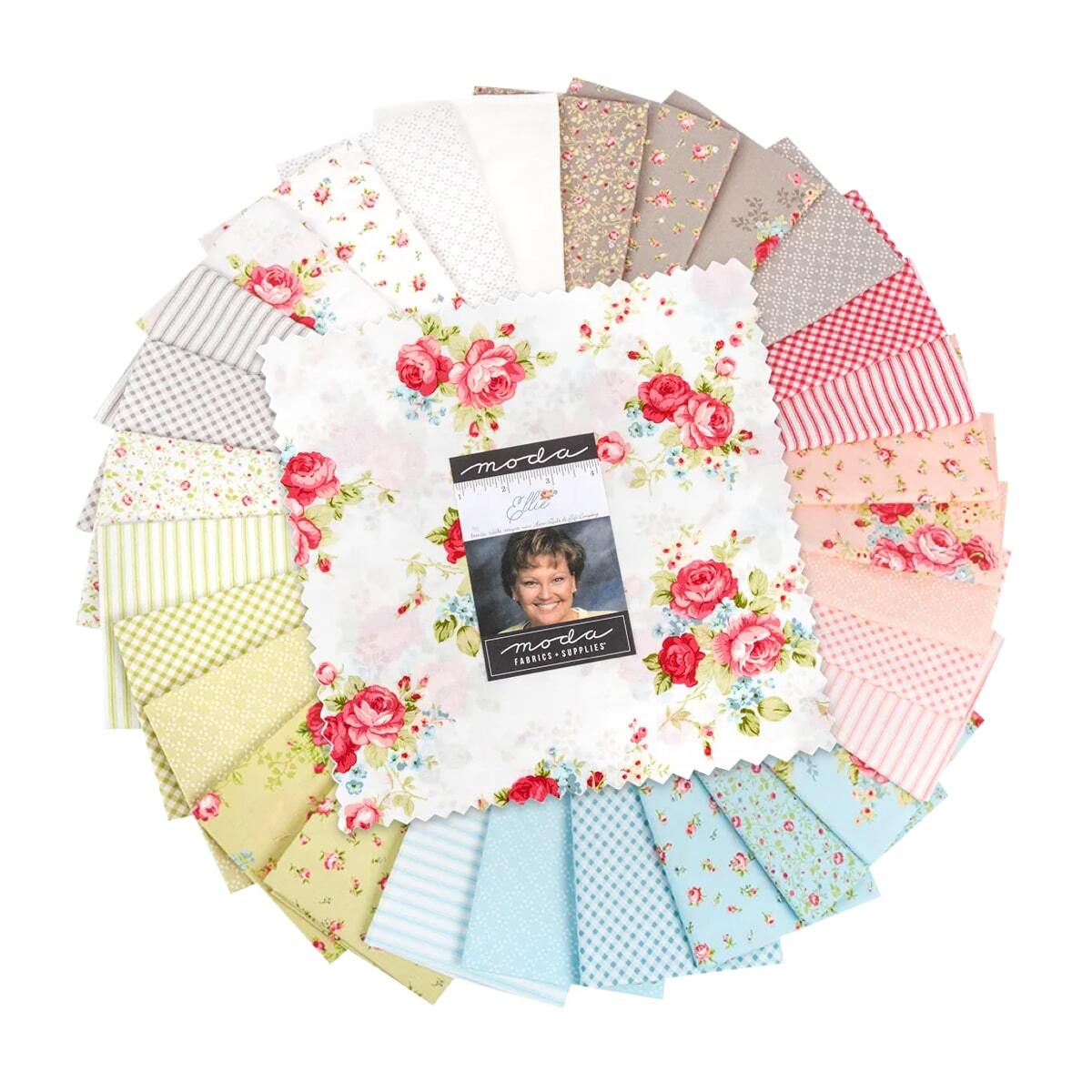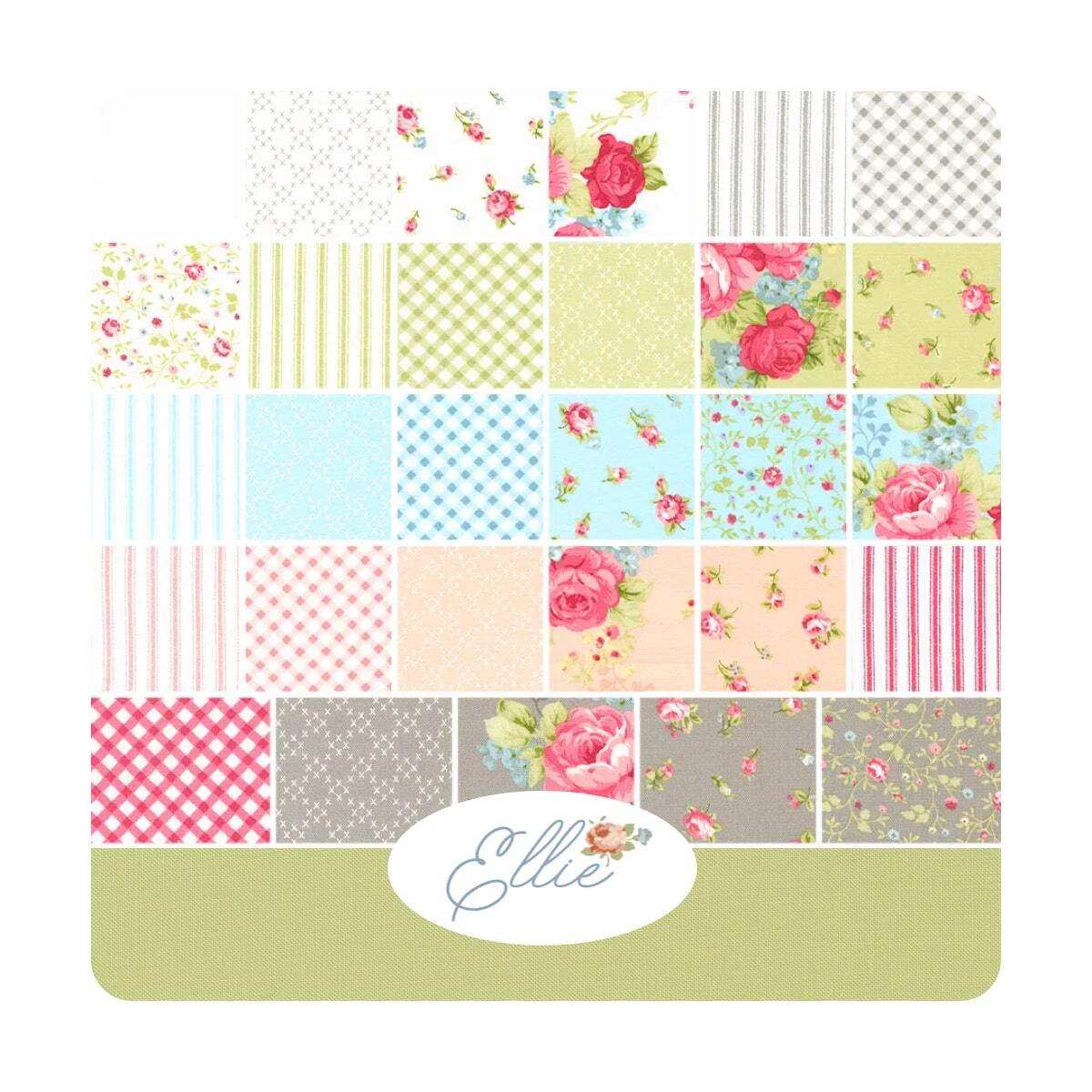 Moda "Ellie" Layer Cake is a convenient pre-cut assortments of colour-coordinated fabric squares in 100% cotton for patchwork quilting. Designed by Designed by Brenda Riddle, and professionally cut and packaged by Moda Fabric, this pack contains 42 of 10" x 10" (or 25.4 cm x 25.4 cm) fabric squares - which are quite large and ideal to show off the design fully.