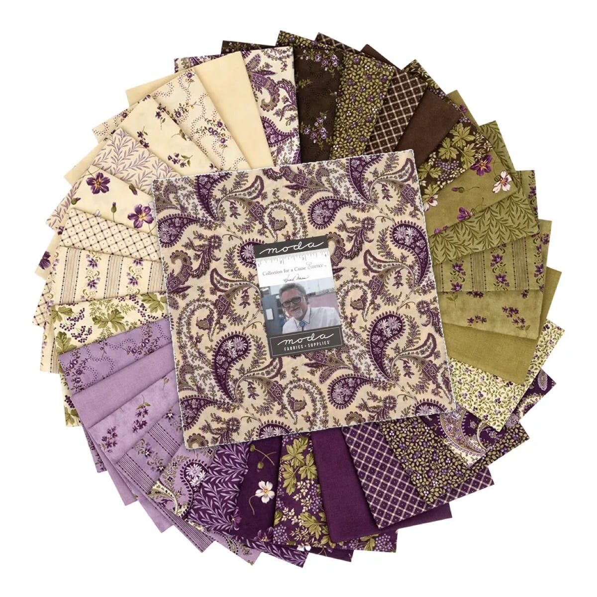 Inspired by antique prints and vintage quilts, Howard has combined florals, swirls and other textures for a delightful and rich blend. Think pansies, lavender and grapes - complimented by lush greens and rich browns. Essence is a beautifully curated collection that you'll really LOVE. It's all for a good cause too - supporting direct relief efforts with the proceeds from Moda's sales.