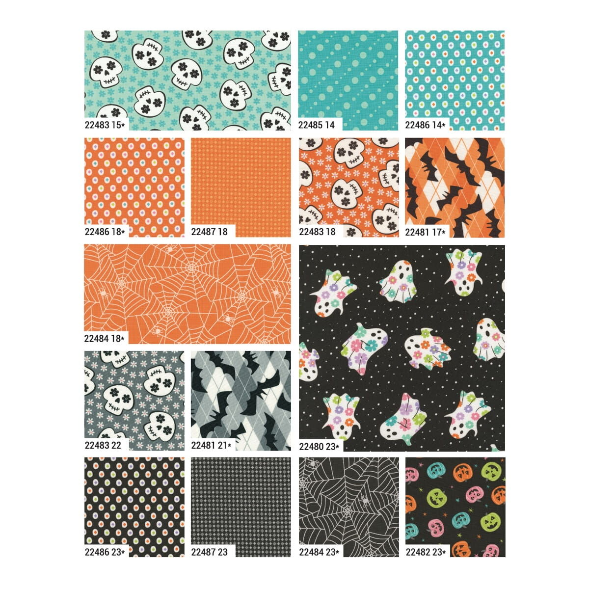 In the same fun and whimsical styled of Me & My Sister, this collection is inspired by Day of the Dead with Sugar Skulls and fabulously dressed ghosts! Party with classic spooky elements, saturated colours and retro coordinating prints with a modern twist - not just for Halloween. Fab-Boo-Lous is a joyful riot of happy prints, perfect for quilters who love colour and fun. Enjoy!