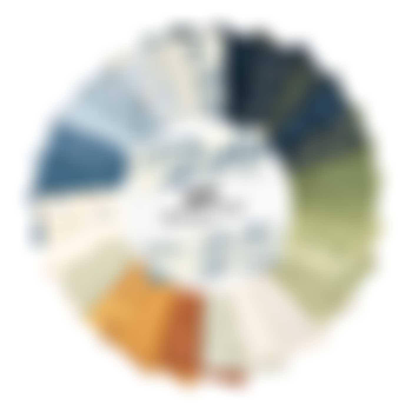 Moda "Family Tree" Charm Pack is a convenient pre-cut assortments of colour-coordinated fabric squares in 100% cotton for patchwork quilting. Designed by Deb Strain and professionally cut and packaged by Moda Fabric, this charm pack contains 42 of 5" x 5" (or 12.7 cm x 12.7 cm) fabric pieces - known as "Charm Squares".