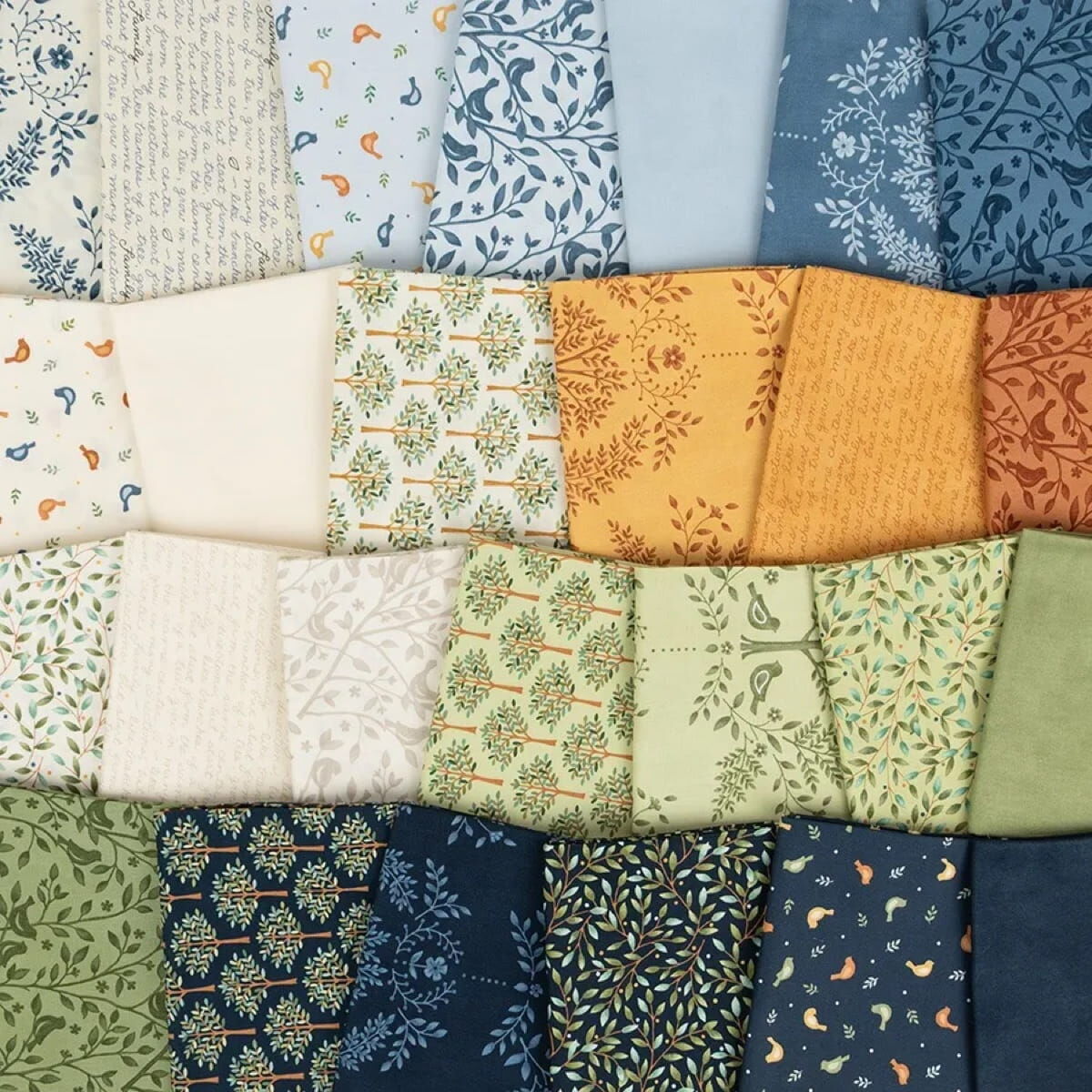 Inspired by antique prints and vintage quilts, Deb has combined all elements of trees, leaf, birds, and other textures like hand-written text in muted watercolours for a softer feel. Think shades of denim blues and sky - complimented by lush greens and rich warm tans and neutrals with tone-on-tone prints. Especially perfect for menfolks or teenagers who prefers their quilts low-key, why not make them something special so that your project becomes the next family heirloom- to be loved and treasured forever!
