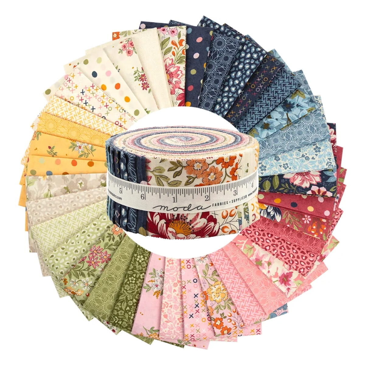 Moda "Fieldrush" Jelly Roll is a convenient pre-cut assortments of colour-coordinated fabric strips in 100% cotton for patchwork quilting. Designed by Basic Grey, and professionally cut and packaged by Moda Fabric, this pack contains 40 strips of 2 1/2" (or 6.4cm) wide fabric, cut across the width - ideal for strip-piecing and perfectly versatile.