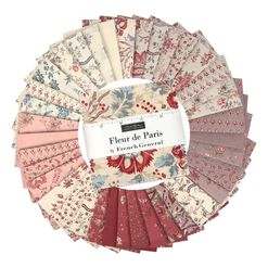 Moda "Fleur de Paris" Charm Pack is a convenient pre-cut assortments of colour-coordinated fabric squares in 100% cotton for patchwork quilting. Designed by Kaari Meng of French General., and professionally cut and packaged by Moda Fabric, this charm pack contains 42 of 5" x 5" (or 12.7 cm x 12.7 cm) fabric pieces - known as "Charm Squares".