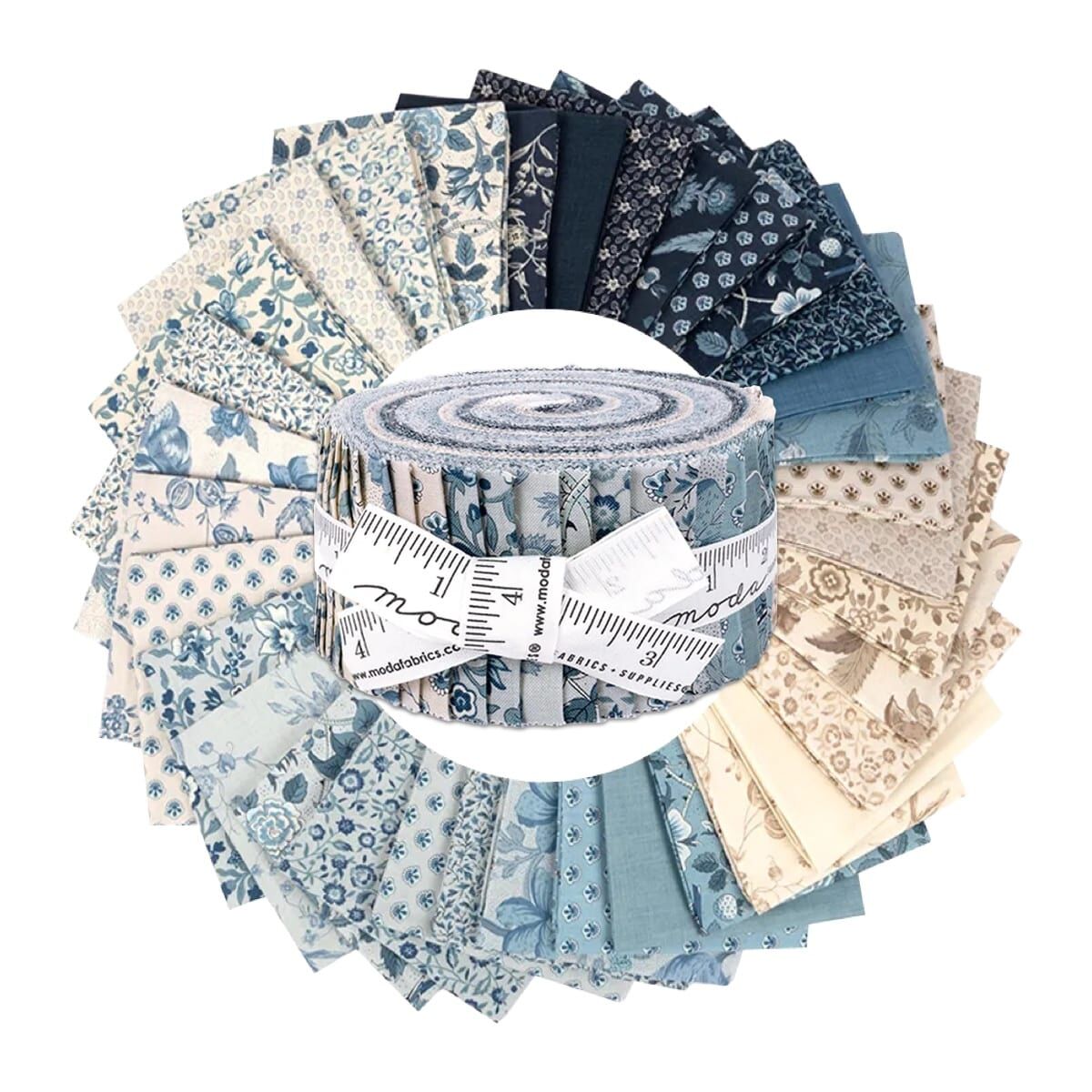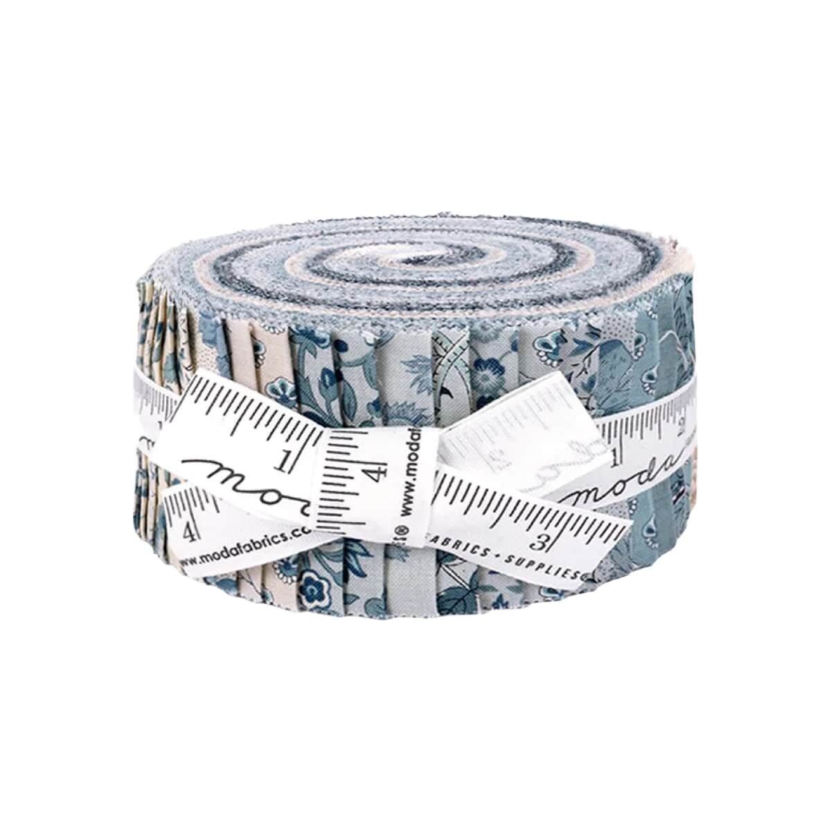 Moda "Sacre Bleu" Jelly Roll is a convenient pre-cut assortments of colour-coordinated fabric strips in 100% cotton for patchwork quilting. Designed by Kaari Meng of French General, and professionally cut and packaged by Moda Fabric, this pack contains 40 strips of 2 1/2" (or 6.4cm) wide fabric, cut across the width - ideal for strip-piecing and perfectly versatile.