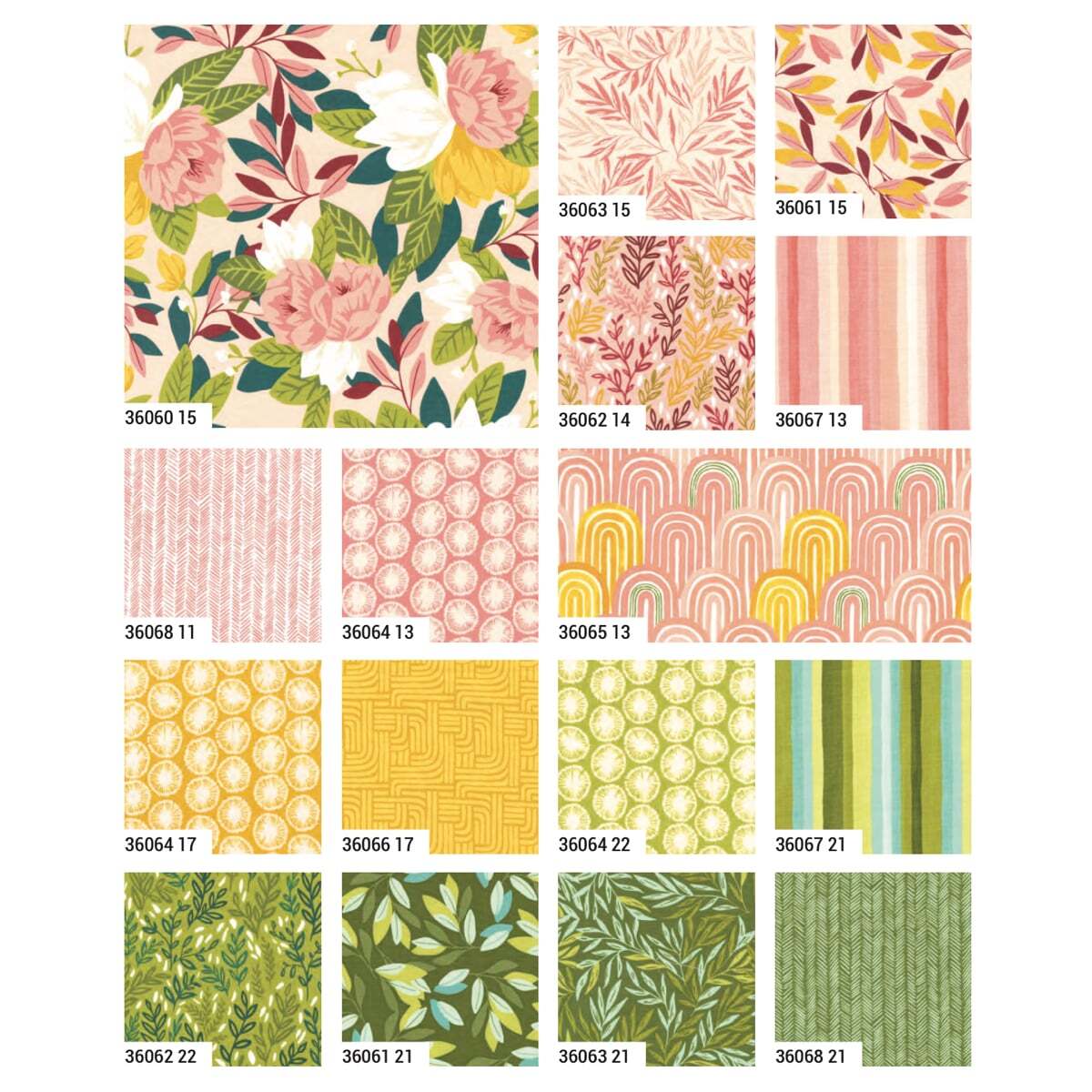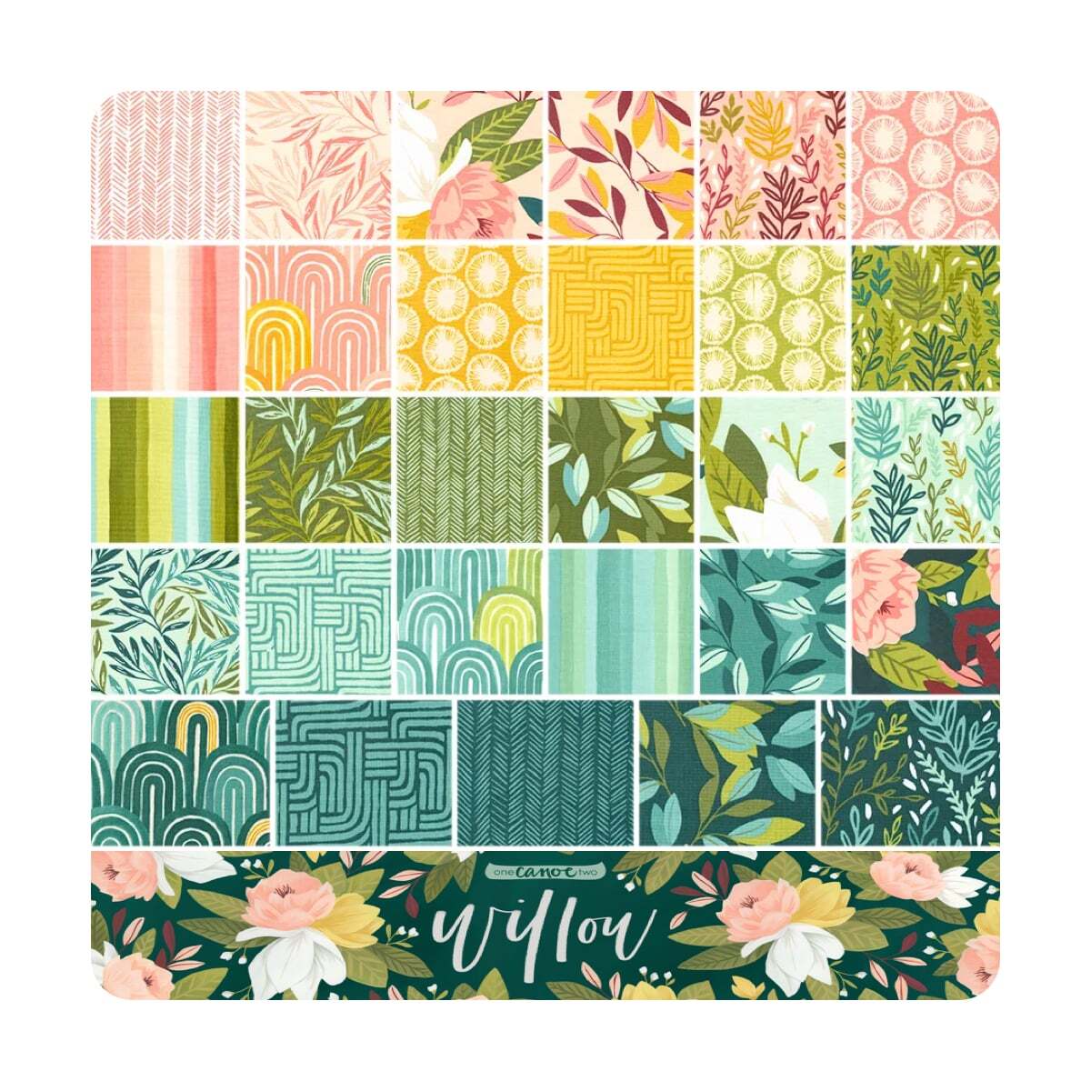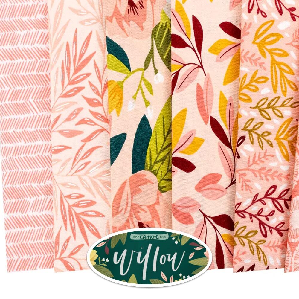 Willow is a throw-back to sunny afternoons spent reading a book on a quilt under the willow tree in your childhood backyard. Bring something fresh and new to your next project using this fantastic collection by One Canoe Two. Willow is a charming collection of modern floral and geometric designs - featuring thriving foliage in bright and unique hues of Shell Pink, Aqua, Olive and Marigold. Enjoy!
