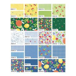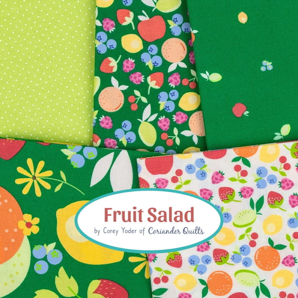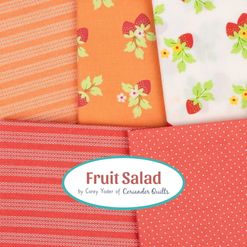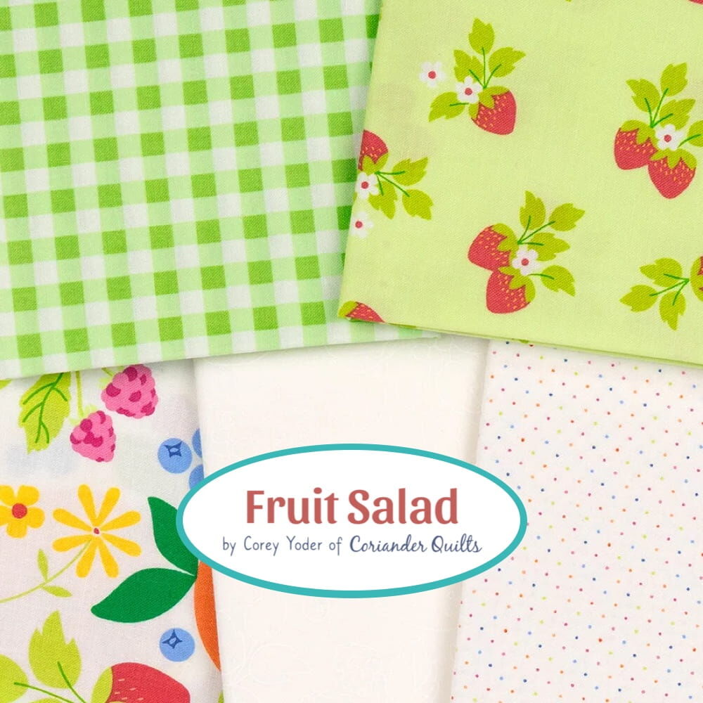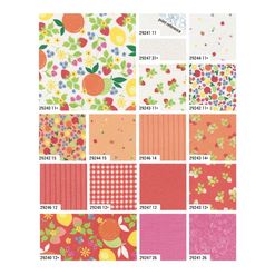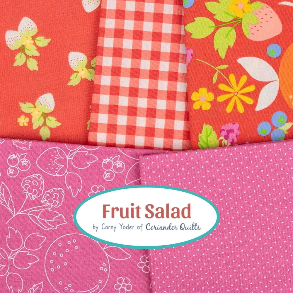 Inspired by the joy of bright, sun-ripened fruit and the carefree days of warm weather sewing, Fruit Salad is a playful mix of colour, whimsy, and nostalgia. Bursting with juicy hues... think strawberry reds, lemony yellows, peachy corals, zesty oranges, and lime greens. Plus a rich, vibrant shade of emerald green that adds beautiful depth and a splash of blueberry and raspberry, balanced by joyful gingham checks, pin dots, and a stripe or two. Each colour feels like a spoonful of sunshine, ready for you to whip up delicious projects. Enjoy!