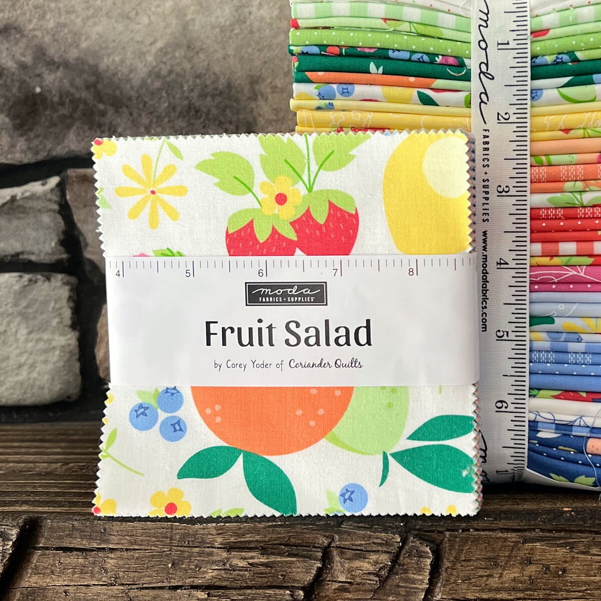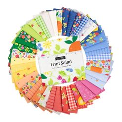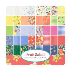 Moda "Fruit Salad Charm Pack is a convenient pre-cut assortments of colour-coordinated fabric squares in 100% cotton for patchwork quilting. Designed by Corey Yonder of Coriander Quilts, and professionally cut and packaged by Moda Fabric, this charm pack contains 42 of 5" x 5" (or 12.7 cm x 12.7 cm) fabric pieces - known as "Charm Squares".