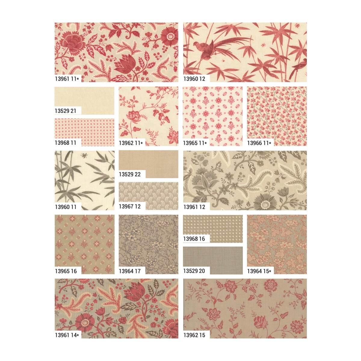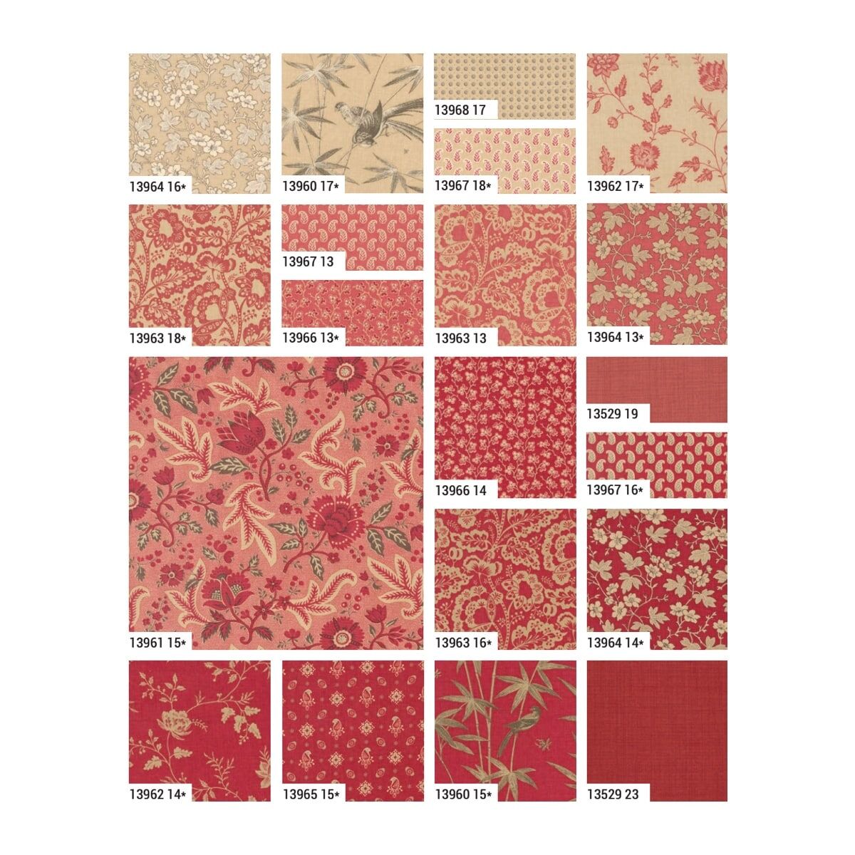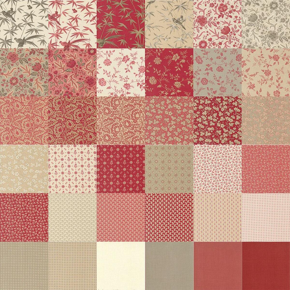 Based on the original Rouenneries, this collection of lovely prints is inspired by the red florals that were printed in Rouen, France in the 18th century. Filled wth antique florals and small prints in a traditional French palette of red, faded cranberry and natural linen colours are perfect for modern day quilters who loves the effortless elegance of French Provincial style. Enjoy!