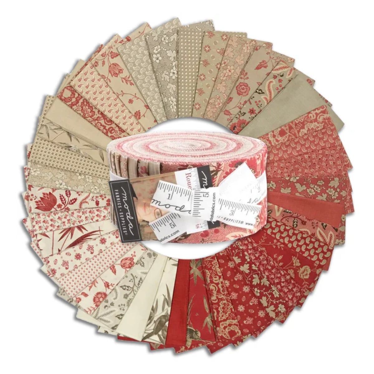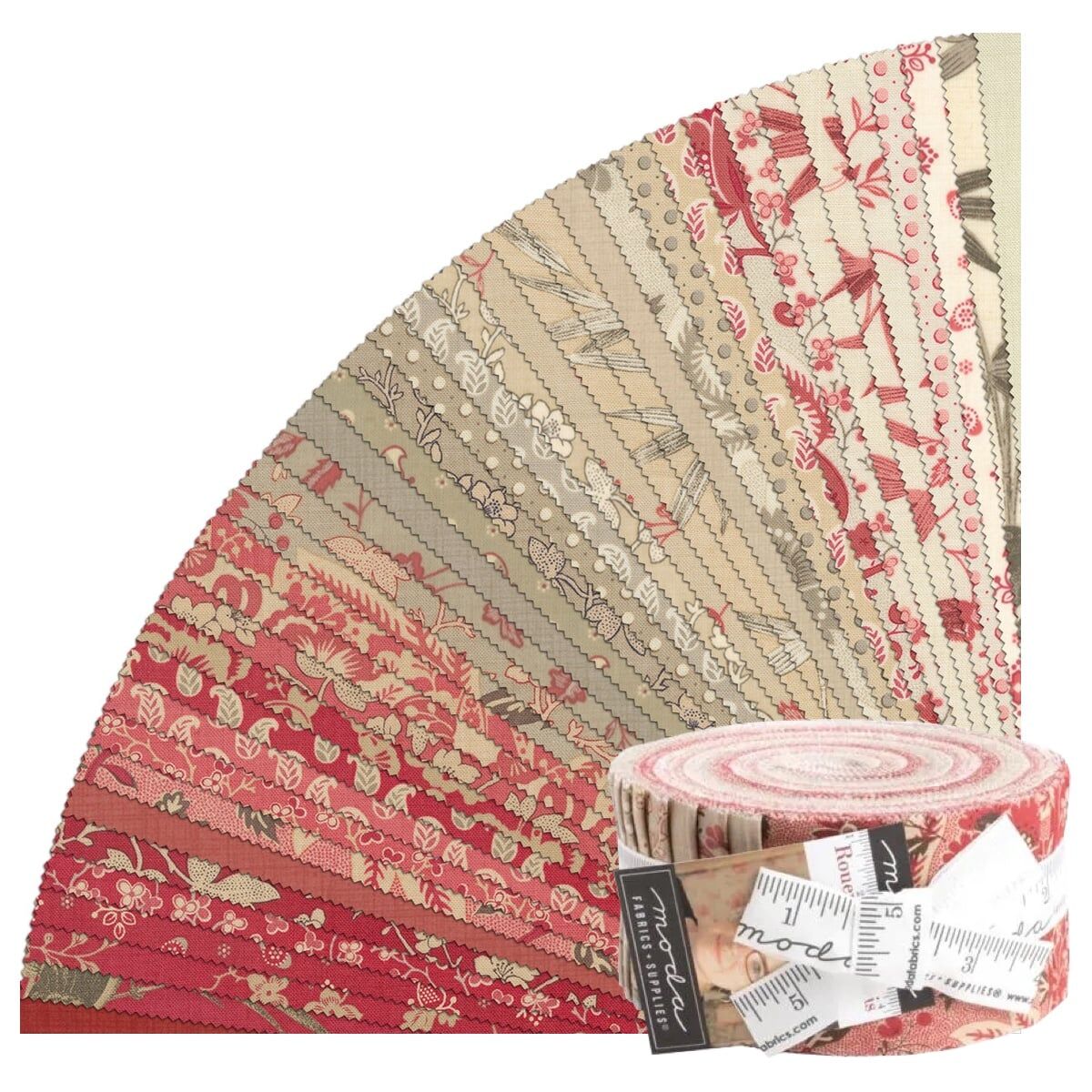Moda "Rouenneries Trois" Jelly Roll is a convenient pre-cut assortments of colour-coordinated fabric strips in 100% cotton for patchwork quilting. Designed by Kaari Meng of French General, and professionally cut and packaged by Moda Fabric, this pack contains 40 strips of 2 1/2" (or 6.4cm) wide fabric, cut across the width - ideal for strip-piecing and perfectly versatile.