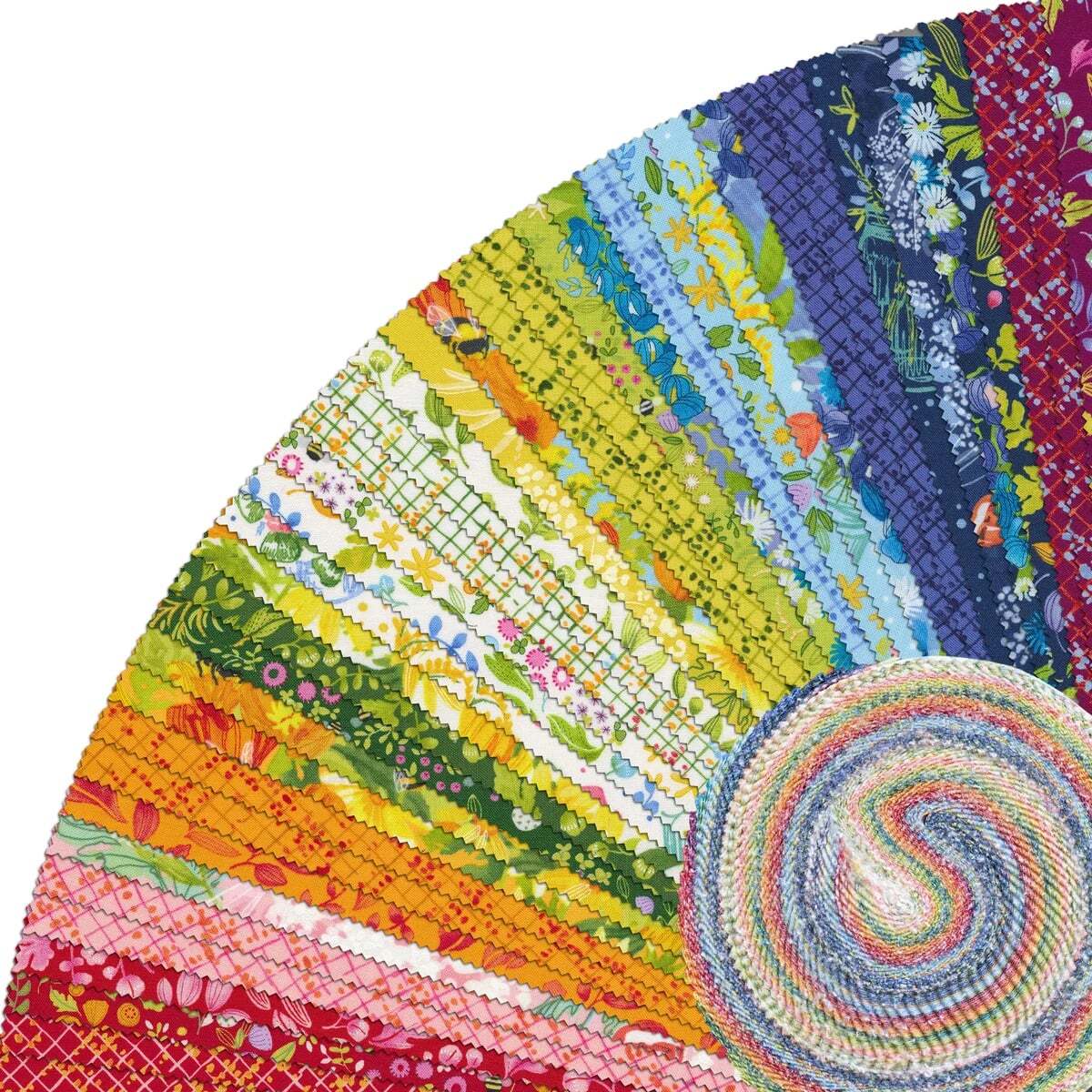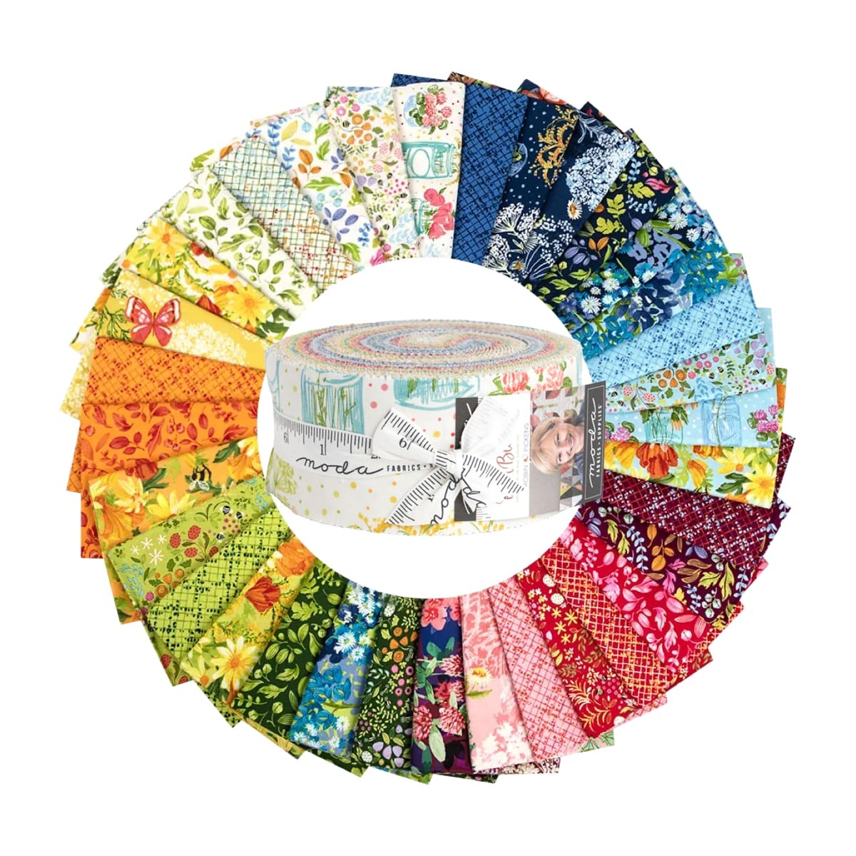 Moda "Wild Blossoms" Jelly Roll is a convenient pre-cut assortments of colour-coordinated fabric strips in 100% cotton for patchwork quilting. Designed by Robin Pickens in her signature modern exuberant style, and professionally cut and packaged by Moda Fabric, this pack contains 40 strips of 2 1/2" (or 6.4cm) wide fabric, cut across the width - ideal for strip-piecing and perfectly versatile. Wild Blossoms is a gorgeous selection of fabrics in Robin Pickens' signature hand-painted style. Enjoy fabulous floral and geometric patterns, all paired with charming Wild Blossoms in colours that range from Thatched Cream, Early Dawn (pink), Berry, Scarlet, Apricot, Buttercup, Chartreuse, Grass, Mist (light blue) and Navy. Take a stroll through a thriving field of flourishing florals with this collection!
