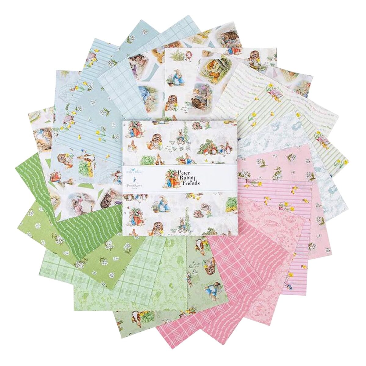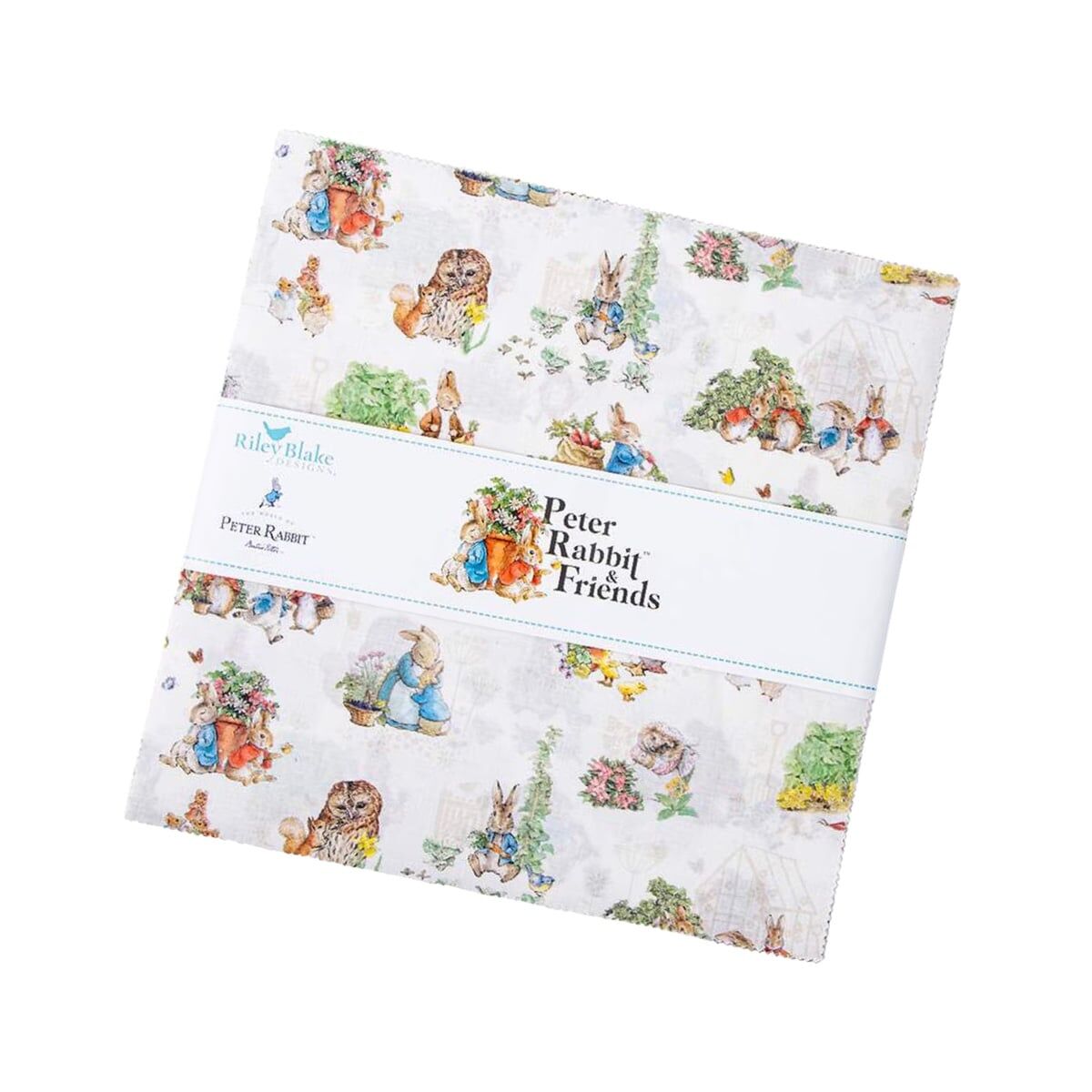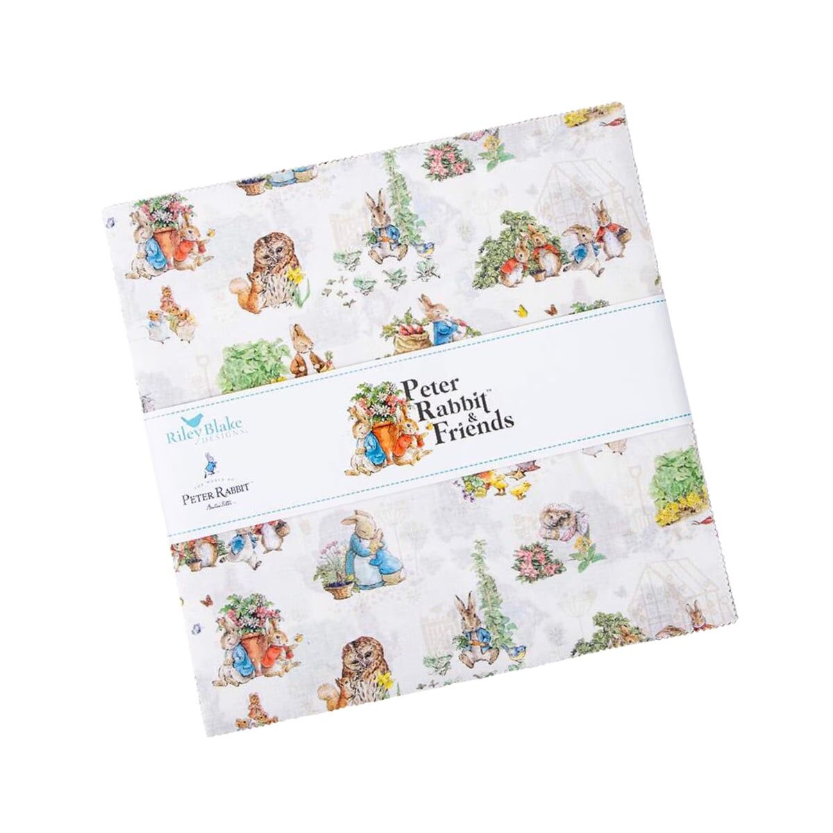 "Peter Rabbit & Friends" Layer Cake / 10" inch Stacker is a convenient pre-cut assortments of colour-coordinated fabric squares in 100% cotton for patchwork quilting. Exclusively licensed to Riley Blake Designs, and professionally cut and packaged, this pack contains 42 of 10" x 10" (or 25.4 cm x 25.4 cm) fabric squares - which are quite large and ideal to show off the design fully.