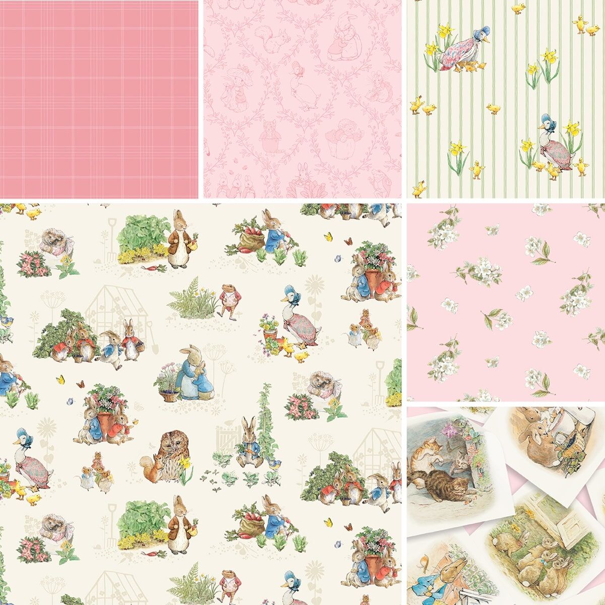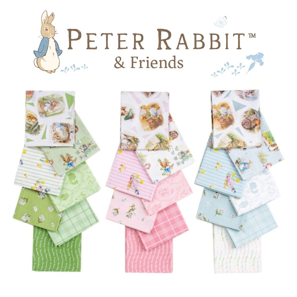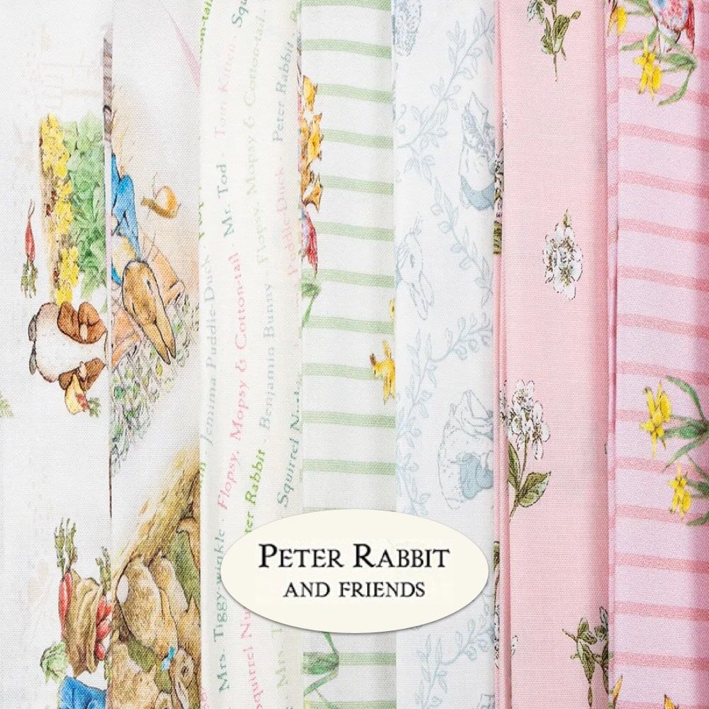 Follow along on the adventures of Peter Rabbit and his friends - all drawn from real animals. Featuring Beatrix Potter's classic characters in fussy-cut-friendly designs, balanced by floral, checks, strips, toiles and themed motifs in shades of soft pinks, blues, cloud and greens, completed with cute creatures and texts - bringing the stories and tales to life. This wonderful collection of fabric will inspire you to create projects and share the classical stories filled with whimsy and imagination. Enjoy!