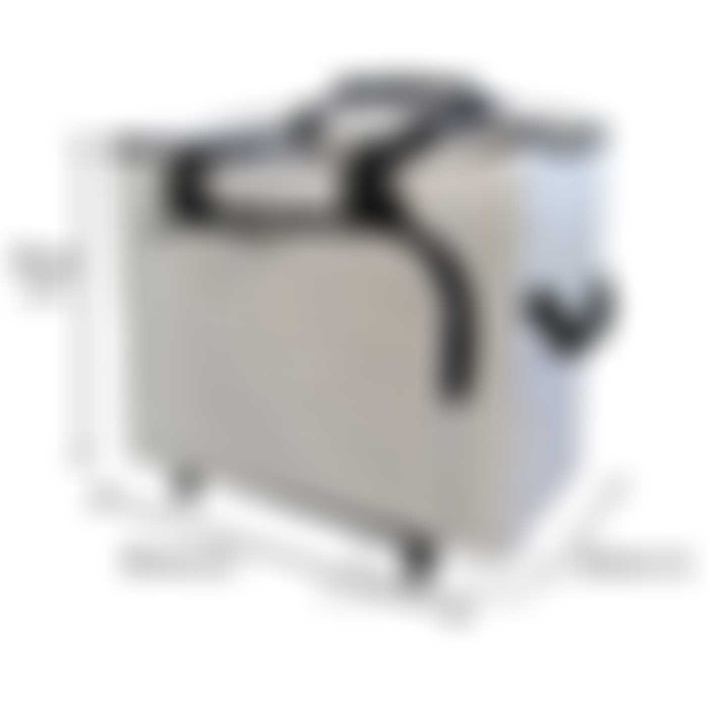 Your very own machine trolley bag with reinforced base to accomodate a standard machine, heavy-duty side handles, and deep pockets on the front to help you organise threads, patterns, and other essentials.