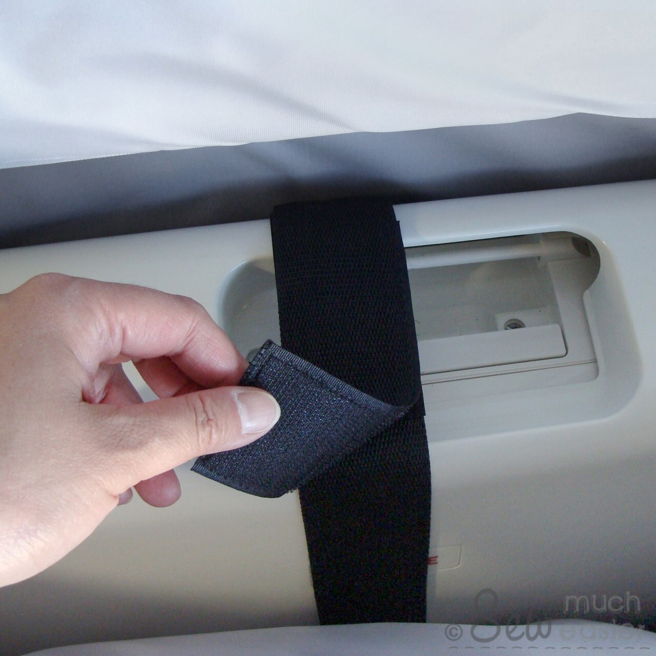 - a Velcro safety strap (like a seat belt) secures your machine so that it stays snug and safe inside the trolley bag, no matter how rough your journey.