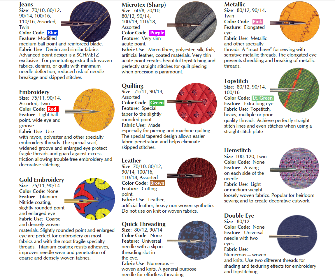 Lterally translated as "quilt needle" Schmetz Stepp-Nadel Quilting Needles are slim with slightly rounded point, making them perfect for piercing multiple layers of fabric.