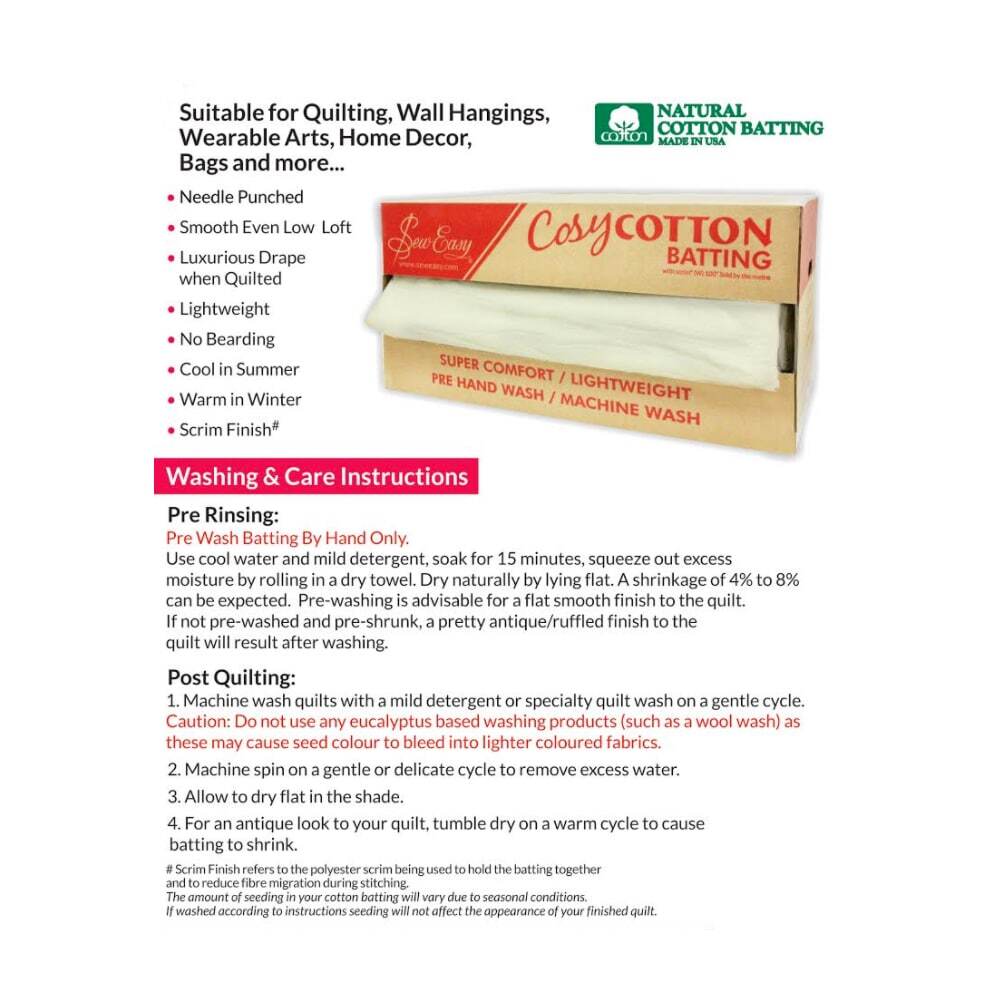 Sew Easy 100% Cosy Cotton batting is your choice because:
