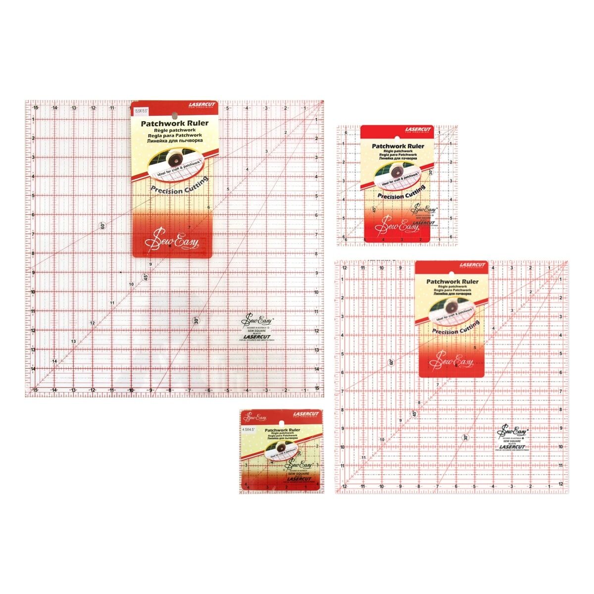 Sew Easy Patchwork Quilting Ruler Set - Squares for Rotary Cutting