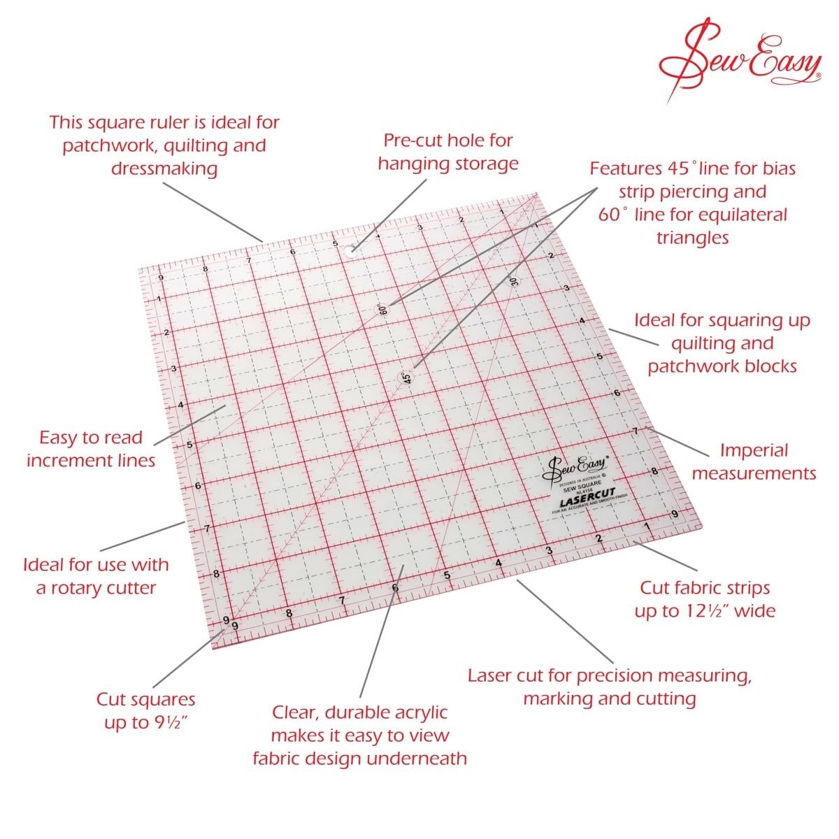 - NL4178 - Sew Easy Patchwork Square Ruler 12.5 x 12.5 Inches (Full Retail: $36.99)