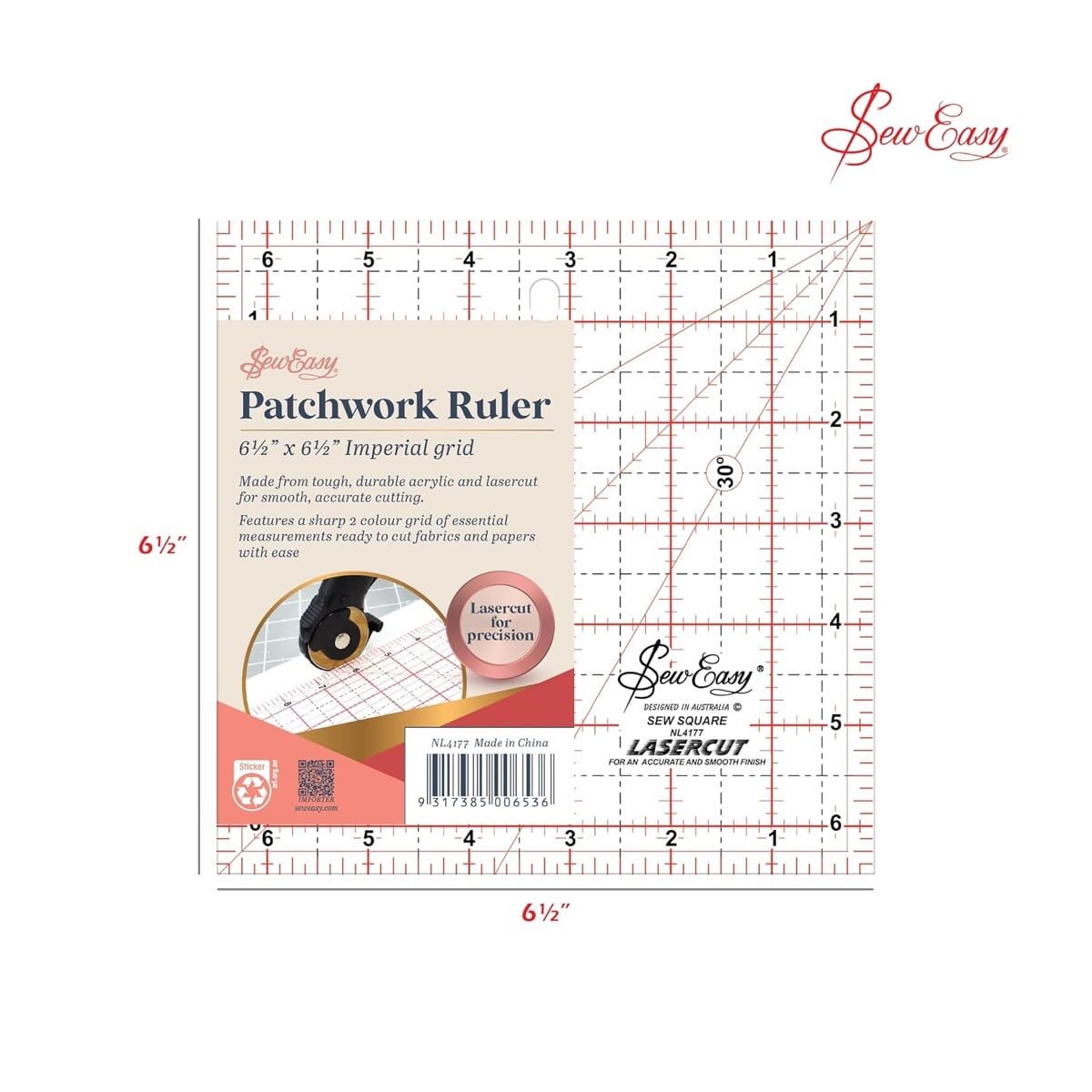 - NL4177 - Sew Easy Patchwork Square Ruler 6.5 x 6.5 Inches (Full Retail: $29.99)