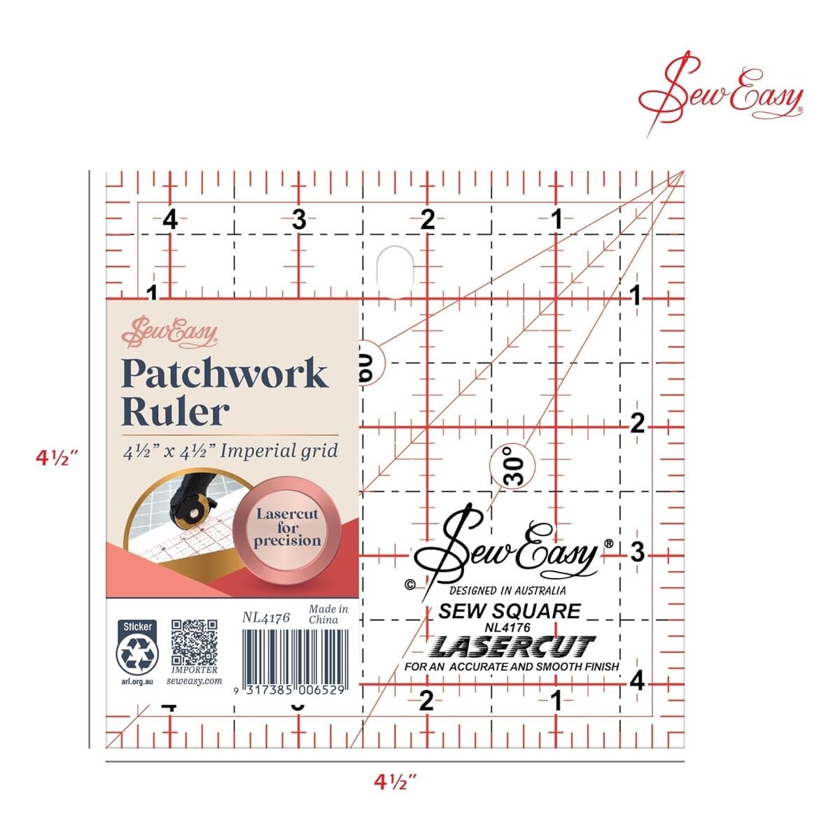 - NL4176 - Sew Easy Patchwork Square Ruler 4.5 x 4.5 Inches (Full Retail: $19.99)