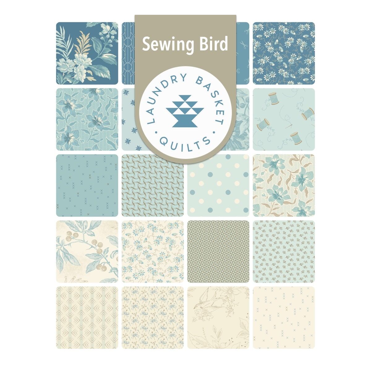 Sewing Bird combines lush florals with sweet sewing themed motifs like thread spools, scissors, and decorative stitching - all in classic palette of blues and neutrals, in the same tradition as Bluebird to help you create timeless elegance effortlessly. Enjoy!