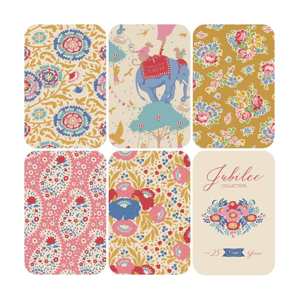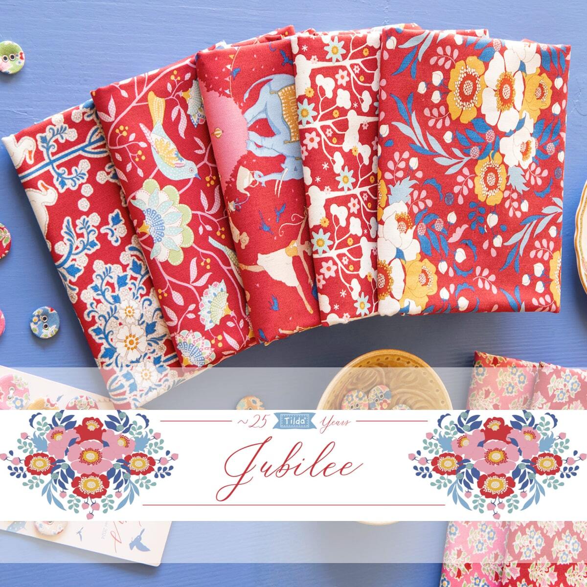 Join the celebration using this wonderful collection! With past Tilda designs making a comeback in this exciting collection, featuring intricate florals, contemporary patterns and so much more, all paired with new and bright hues. The collection includes a special Jubilee edition of the popular Circus range, along with prints from other classic collections such as Plum Garden, Apple Butter, and Bird Pond. The colour palette boasts shades of bright red, blue, teal, yellow, and pink - inspired by the Arts and Crafts movements. Enjoy!