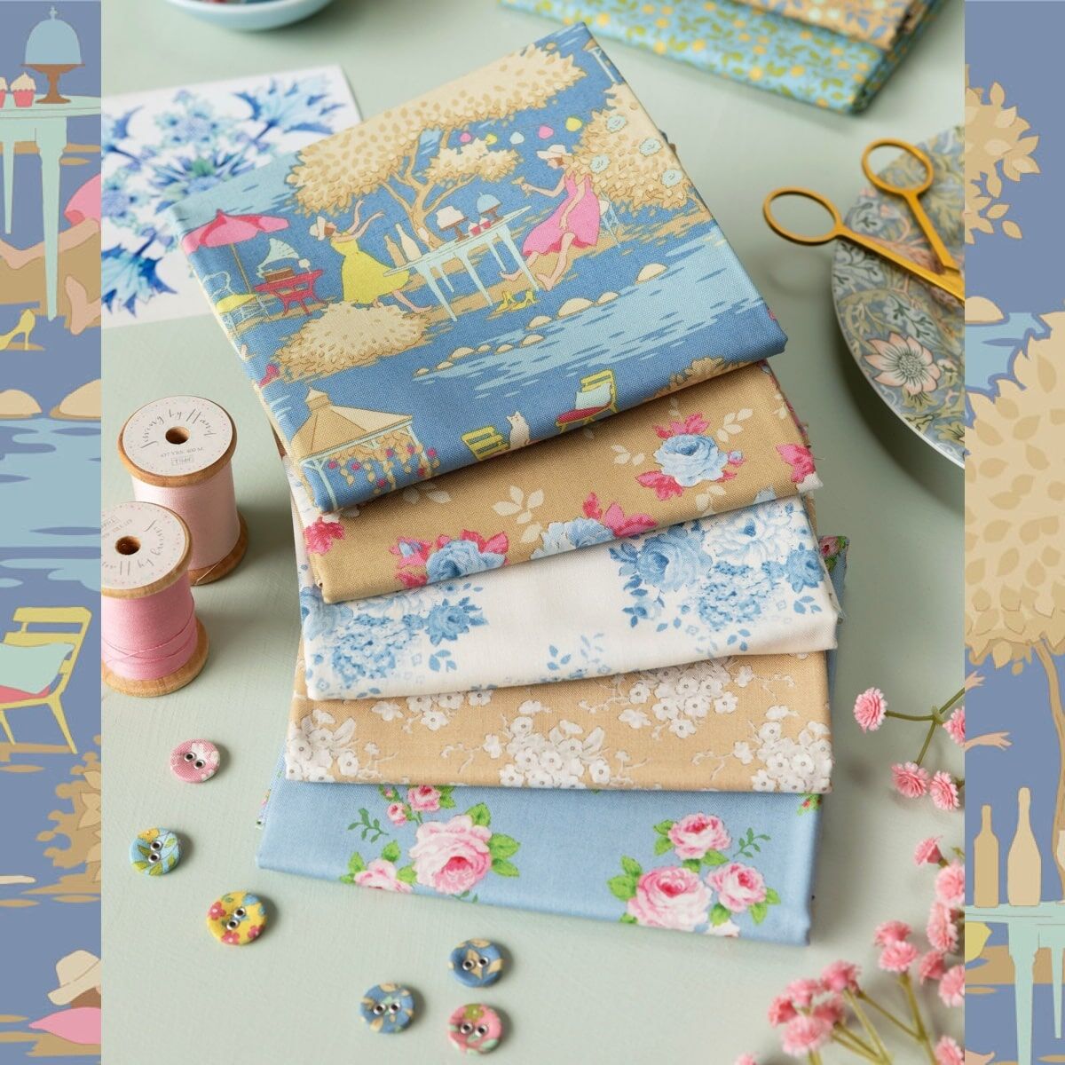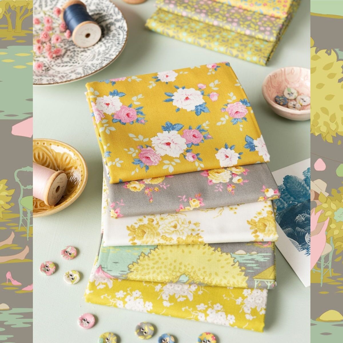 Sunday Brunch is a softly colourful vintage collection, made for soft and dreamy summer quilts and for creating the ultimate vintage summer house style. The colour palette is gentle with a dash of citrus notes for freshness, with colours ranging from teal, green, soft greys and yellows to ginger, pinks, blues and sand - perfectly complimenting a joyous scene depicting friends sharing a lovely, laid-back brunch in the garden. Enjoy!